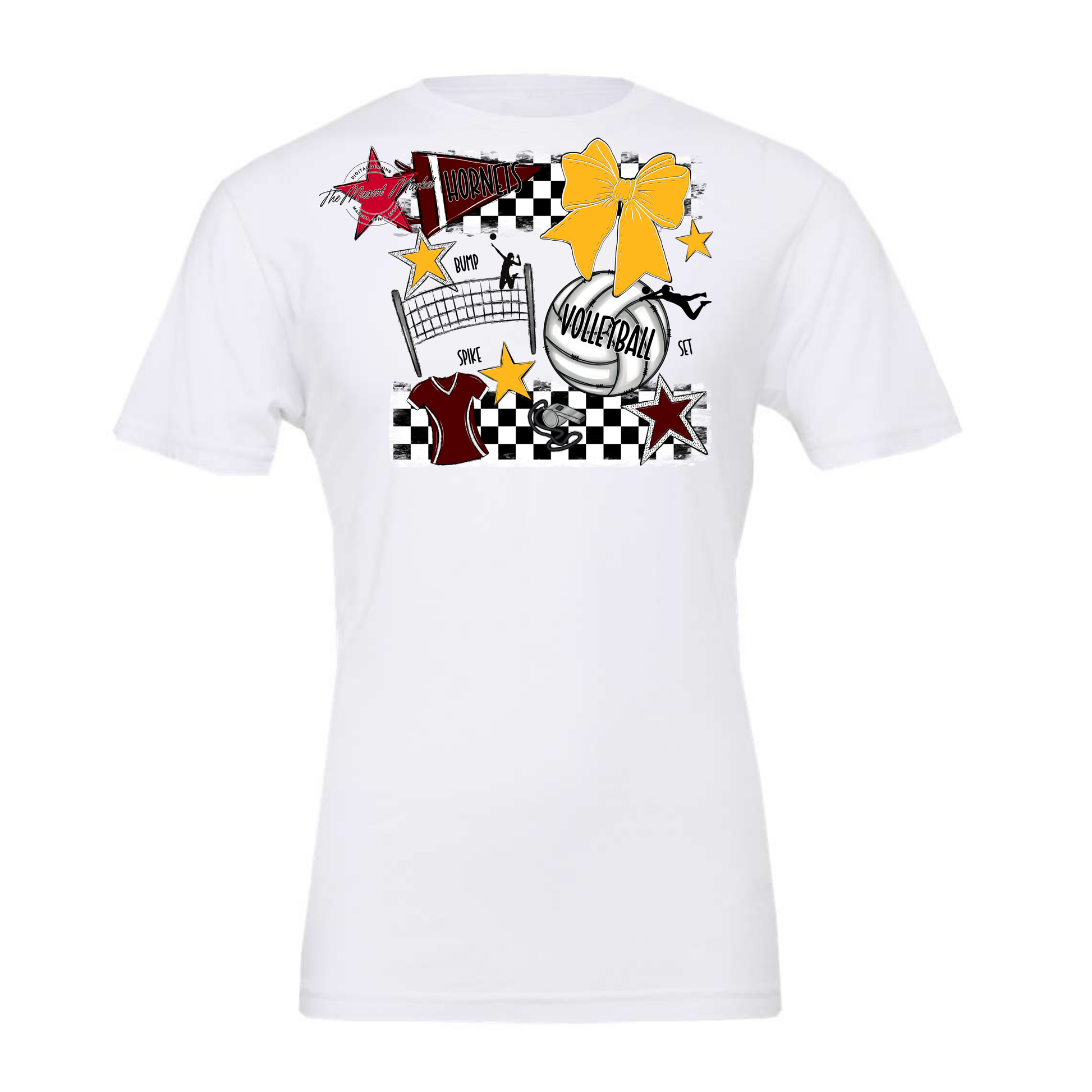 Hornets Checkers Volleyball Spirit Design-Maroon-Yellow