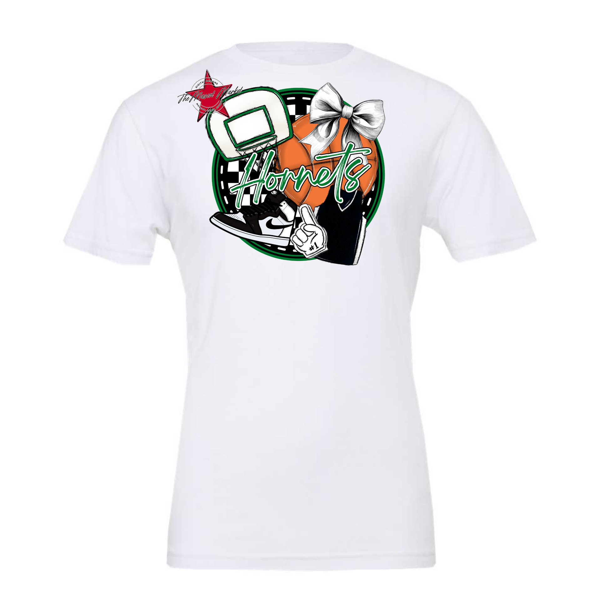 Hornets Circle Basketball Design-Kelly Green