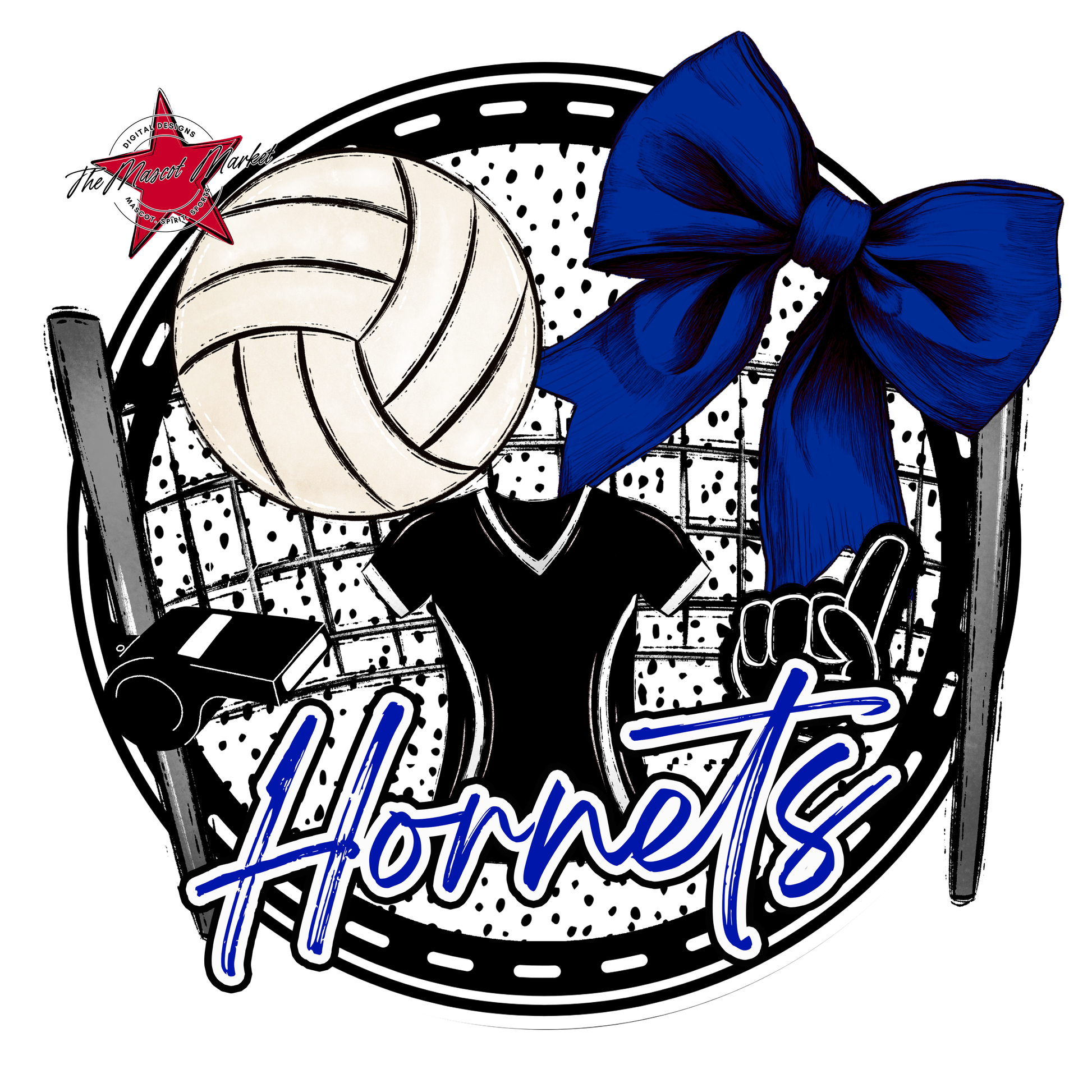 Hornets Circle Volleyball Design-Blue