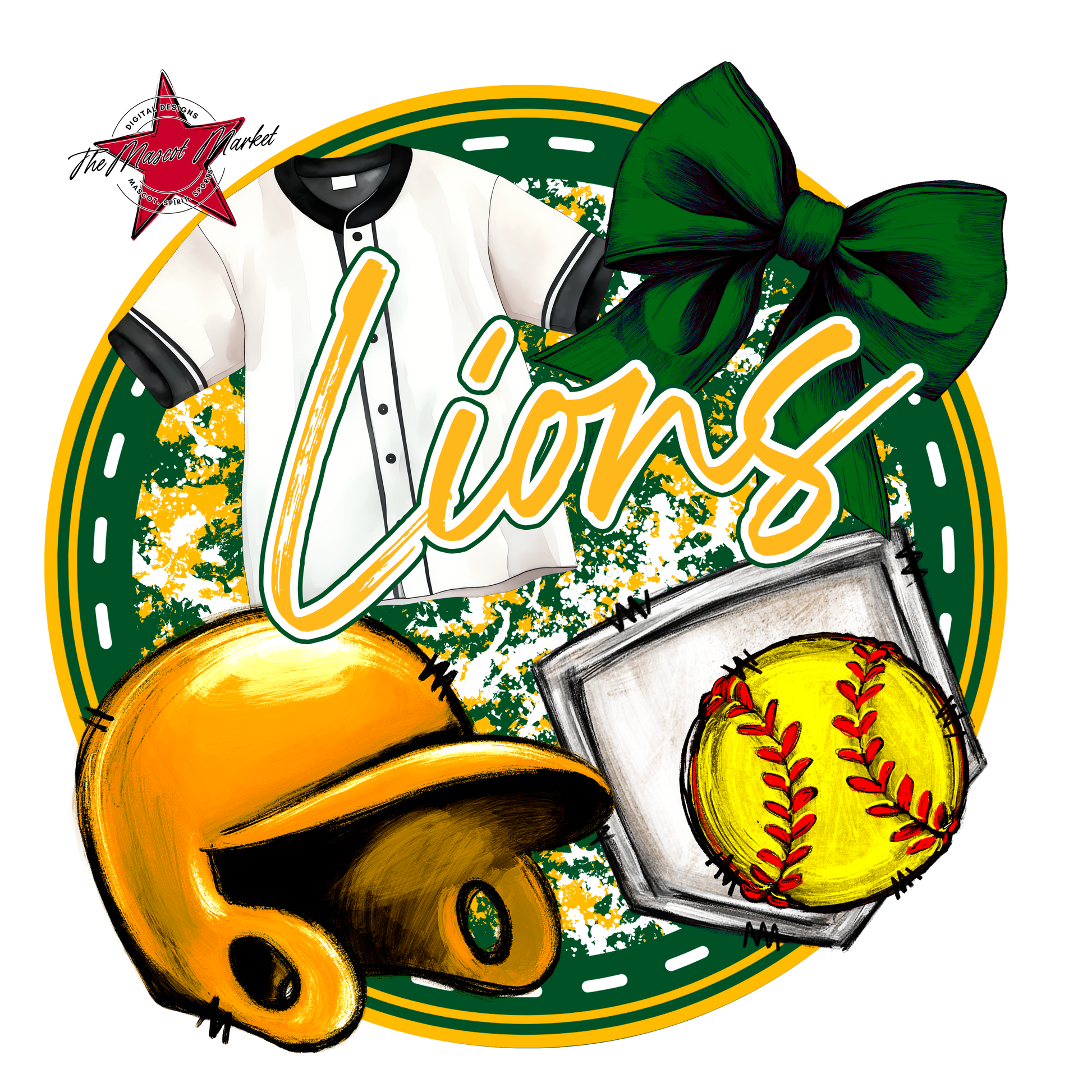 Lions Circle Softball Design-Green-Yellow
