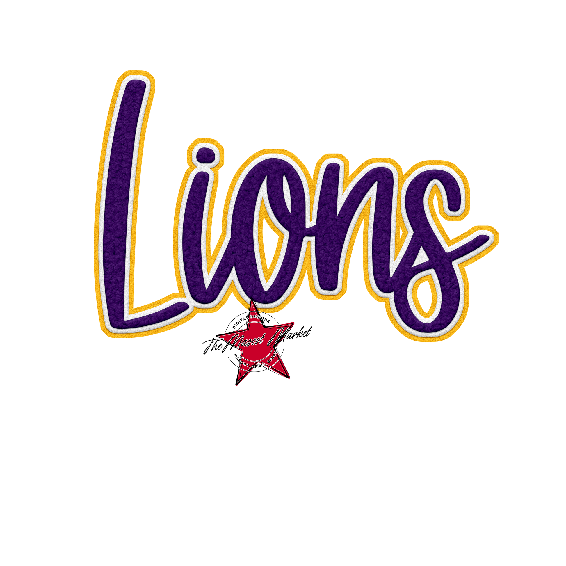 Lions Faux Chenille Patch-Purple-Yellow