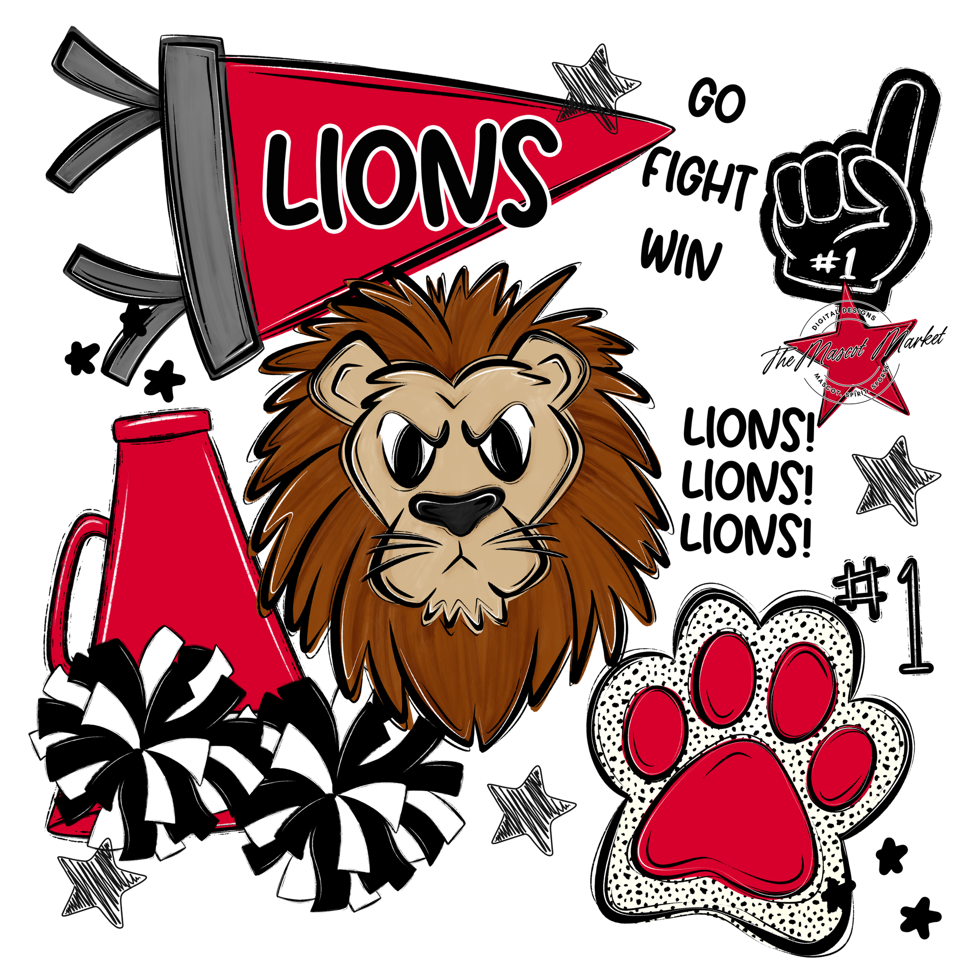 Lions Mixed Mascot Spirit Design-Red
