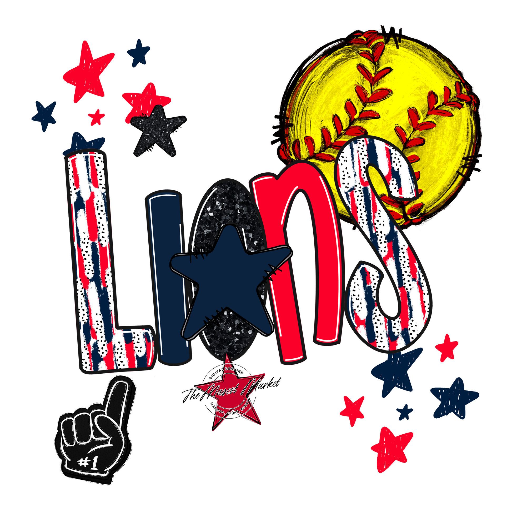 Lions Softball Scrape-Navy-Red