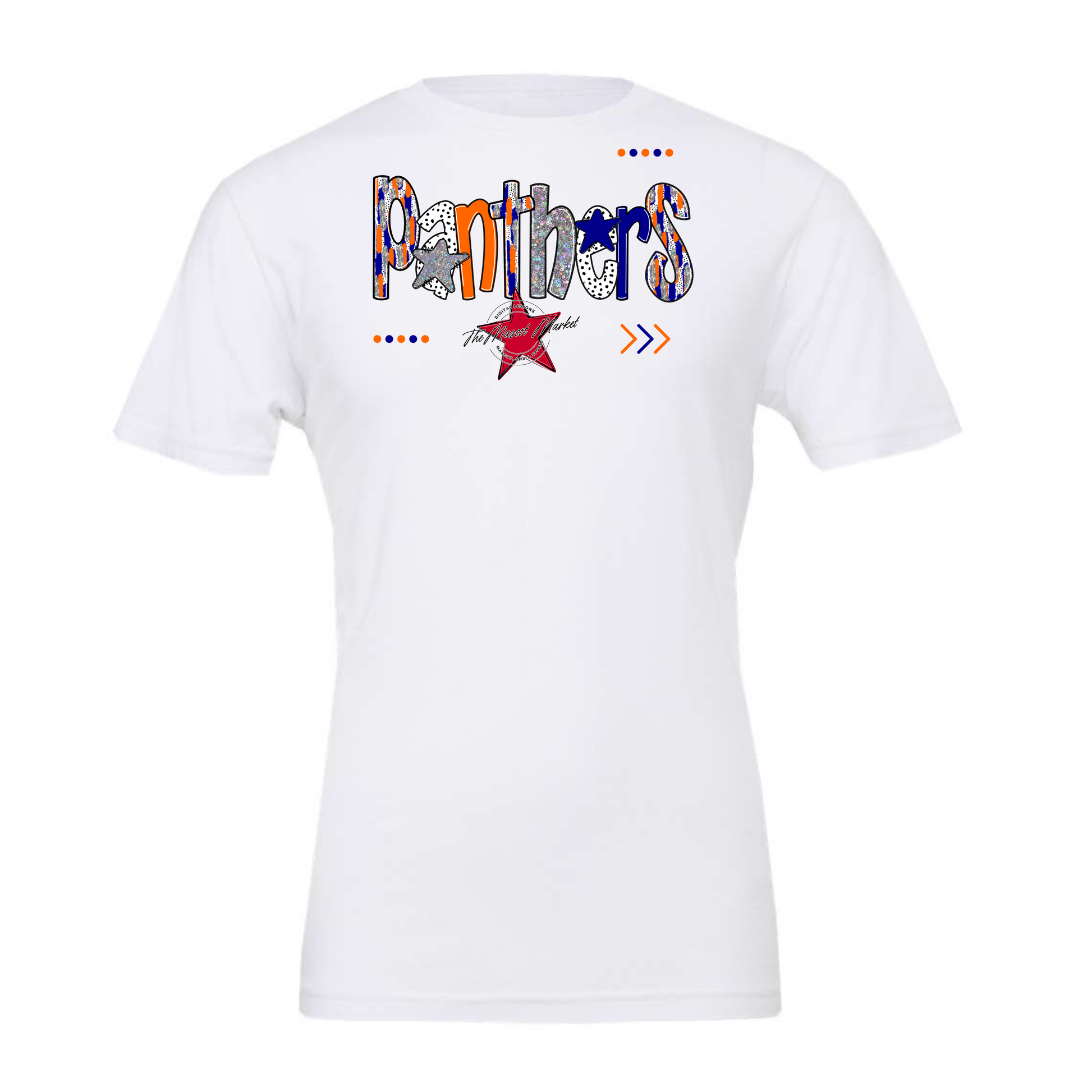Panthers Brushstroke Alpha w Arrows-Blue-Orange