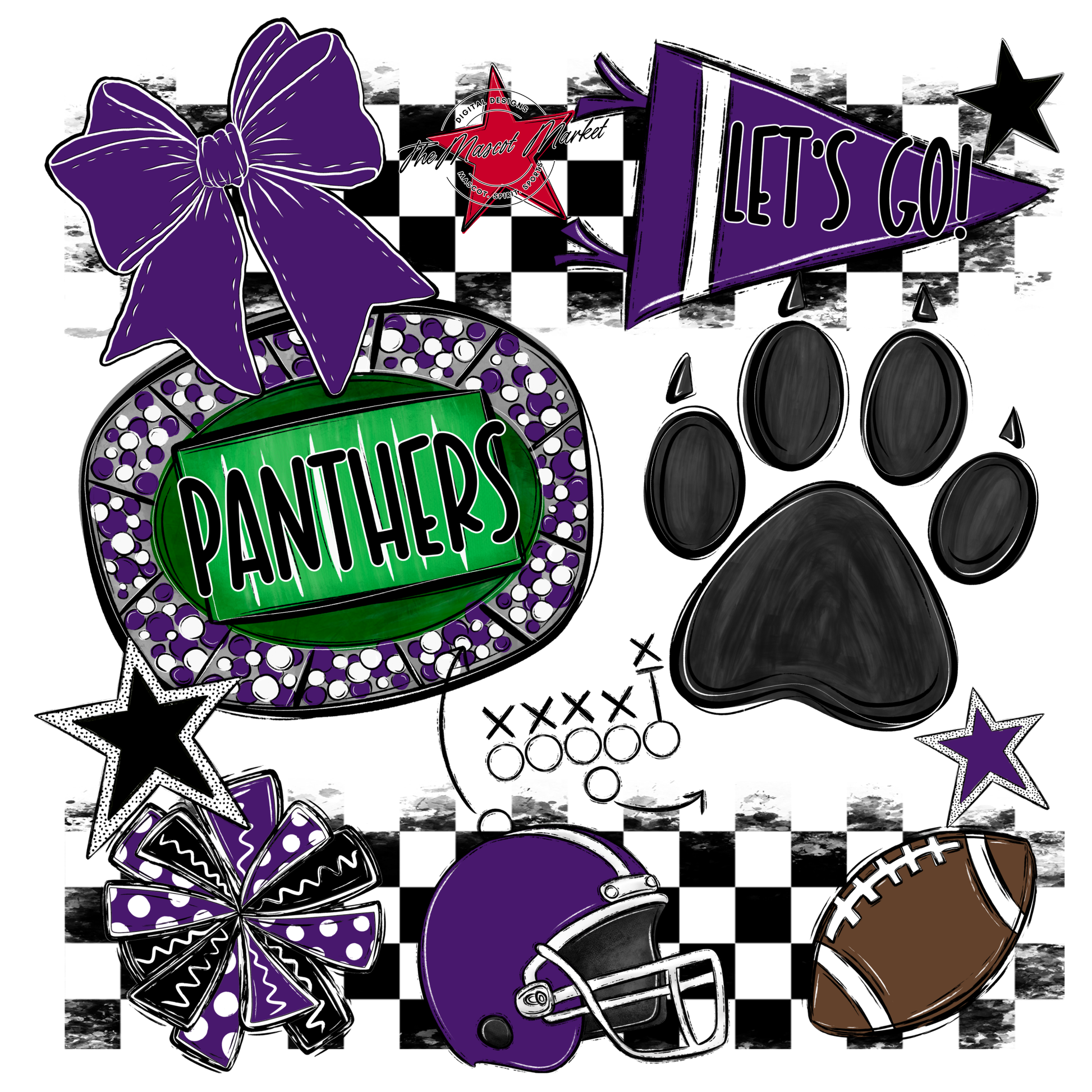 Panthers Checkers Mascot Spirit Design w Paw-Purple