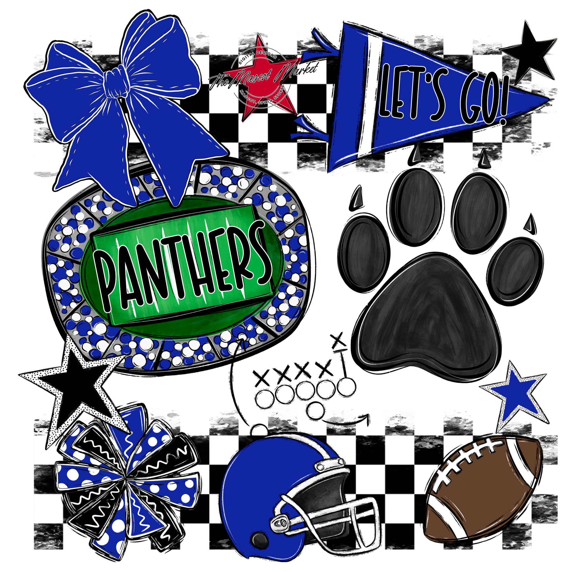 Panthers Checkers Mascot Spirit Design w Paw-Royal Blue