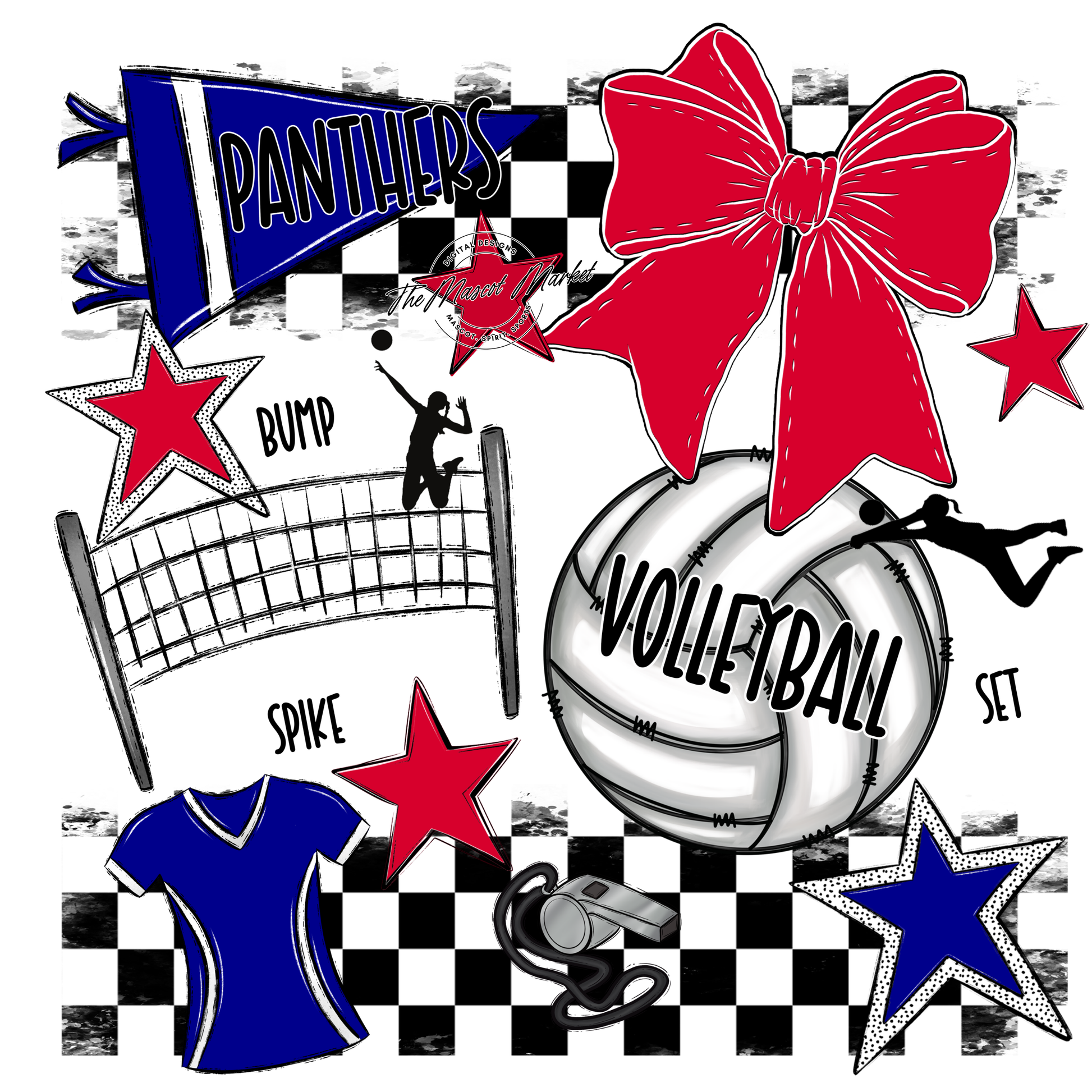 Panthers Checkers Volleyball Spirit Design-Blue-Red