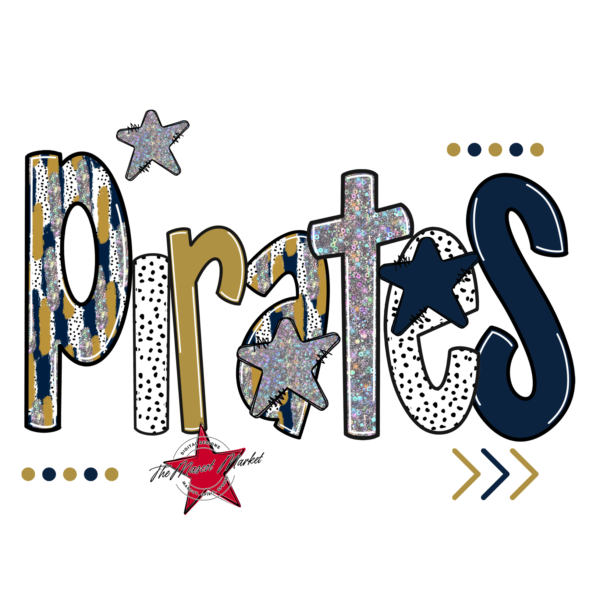 Pirates Brushstroke Alpha w Arrows-Navy-Gold