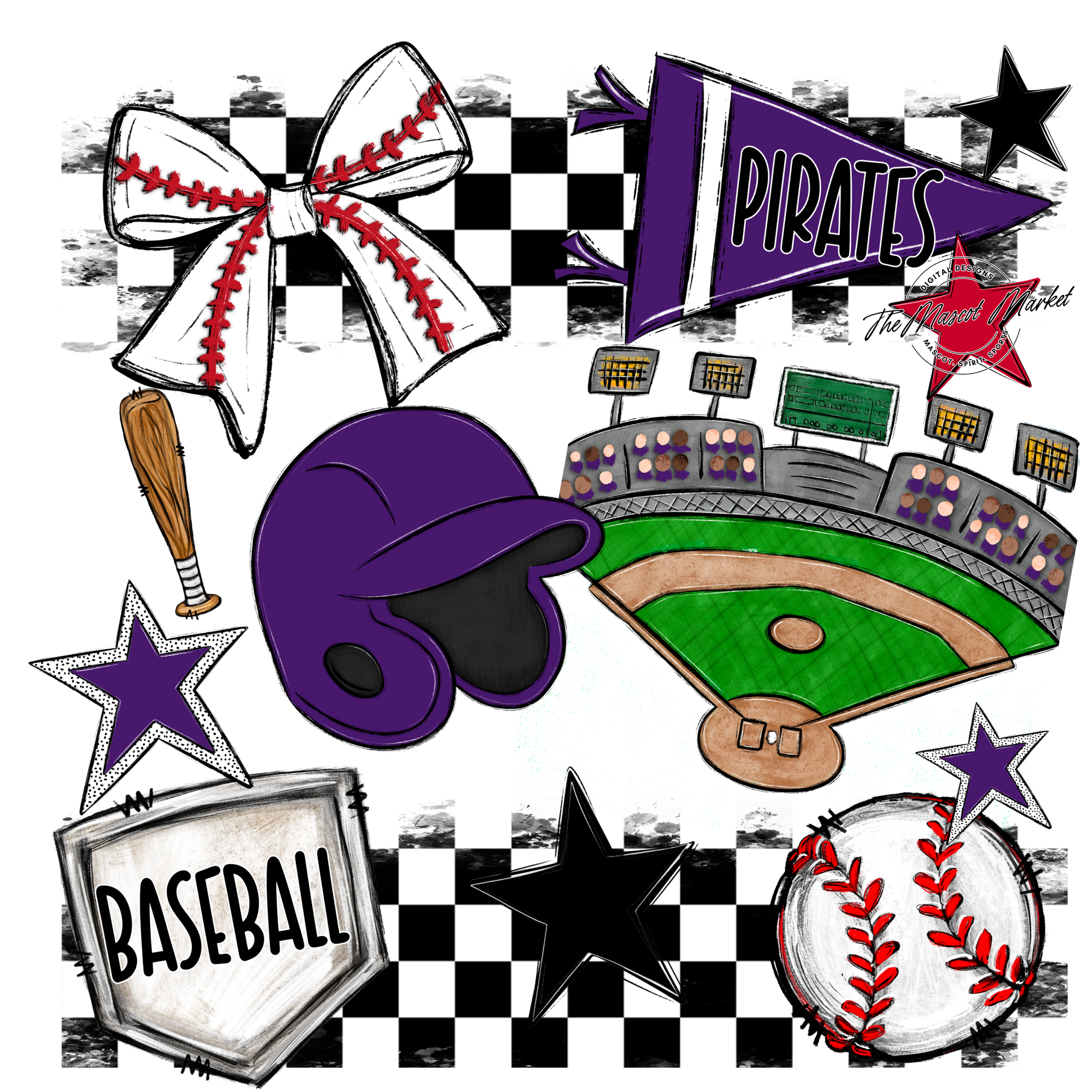 Pirates Checkers Baseball Spirit Design-Purple