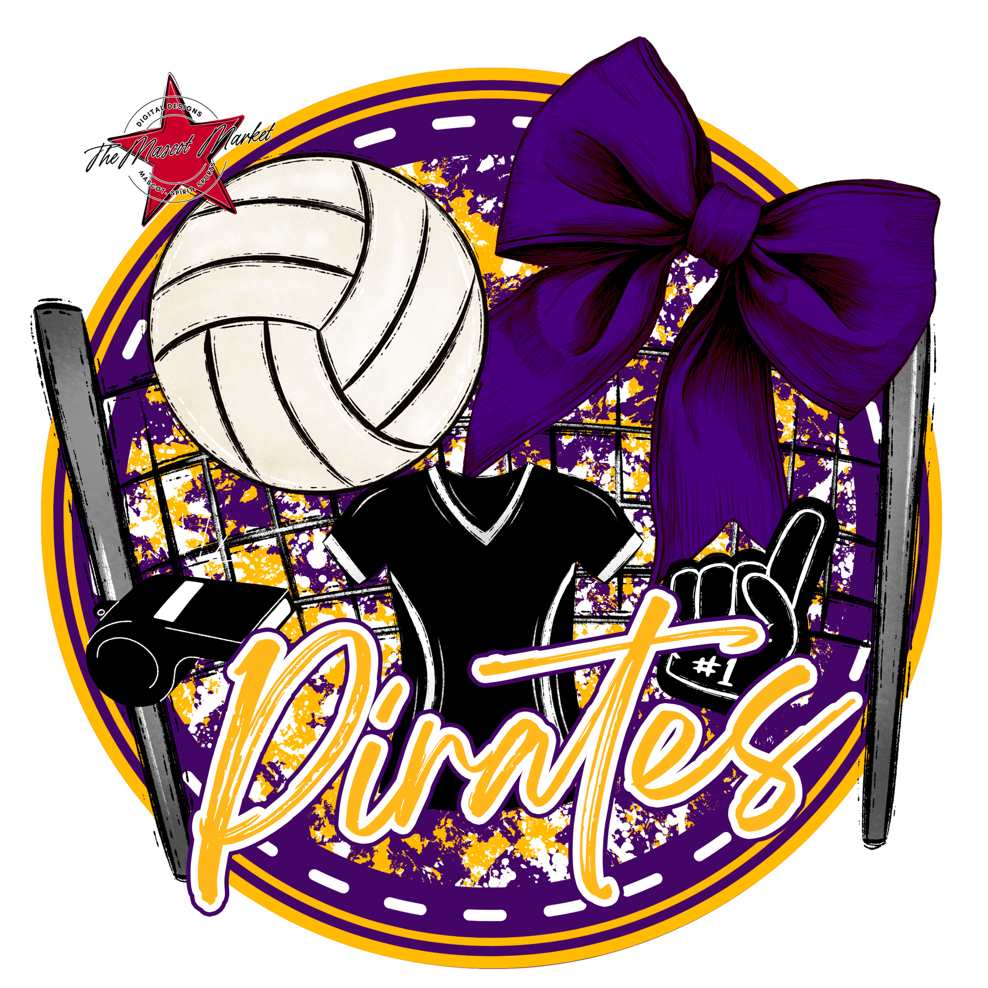 Pirates Circle Volleyball Design-Purple-Yellow