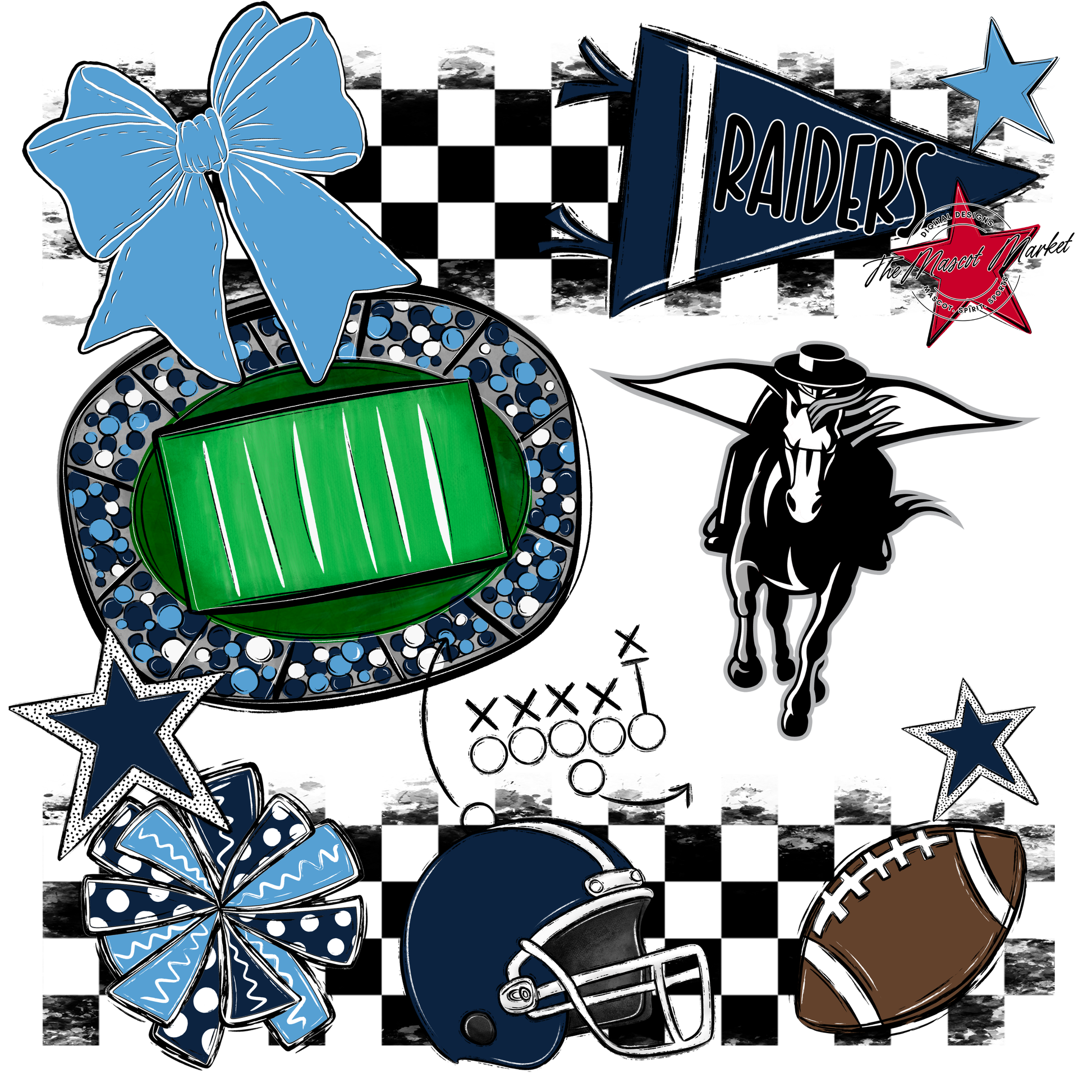 Raiders Checkers Mascot Spirit Design-Navy-Carolina Blue