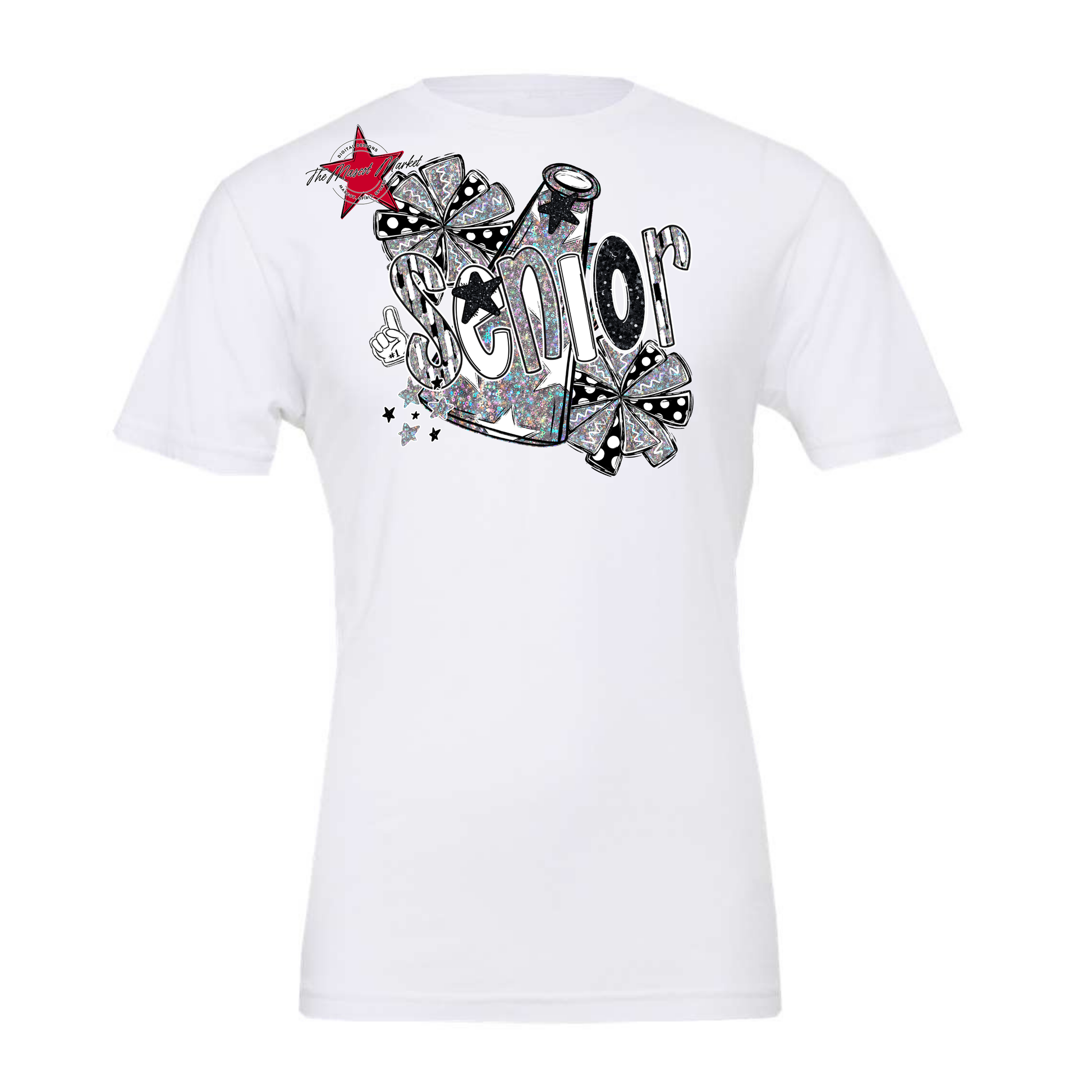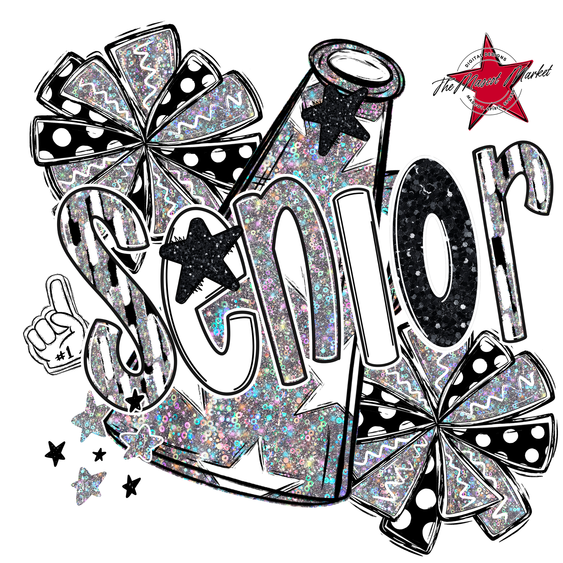 Senior Cheer Megaphone Scrape Holigraphic-Black & White