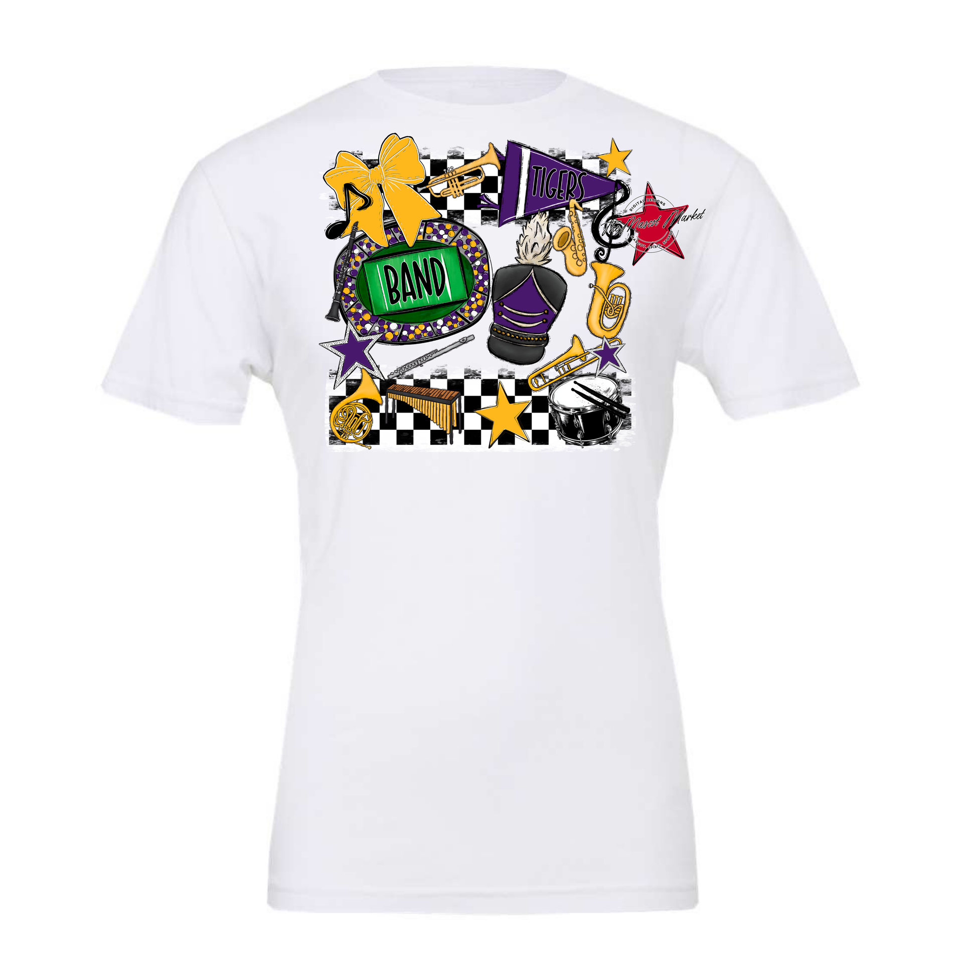 Tigers Checkers Band Spirit Design-Purple-Yellow