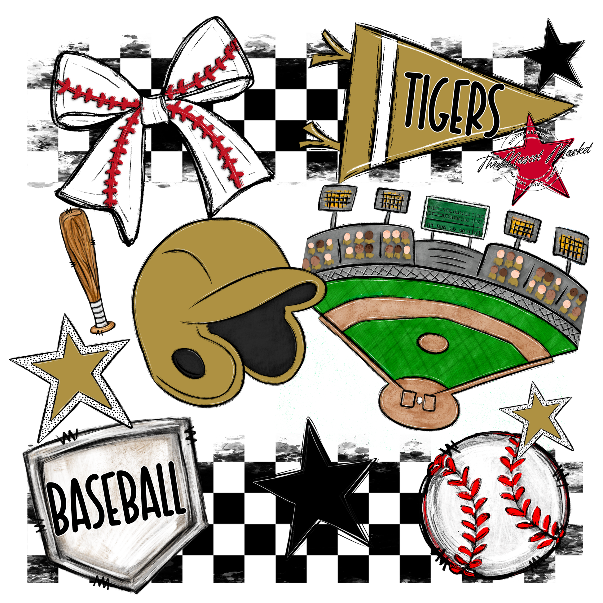 Tigers Checkers Baseball Spirit Design-Gold