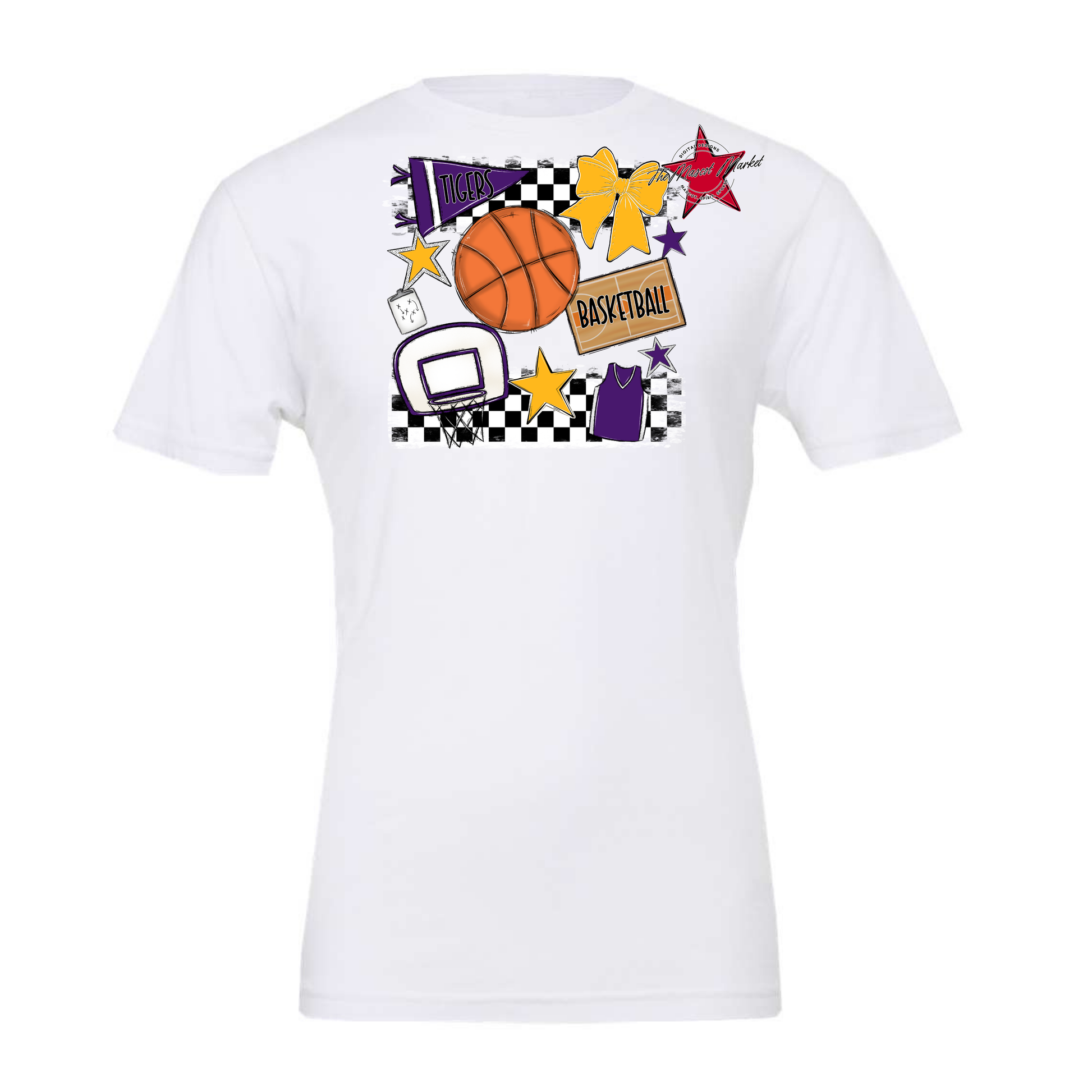 Tigers Checkers Basketball Spirit Design-Purple-Yellow