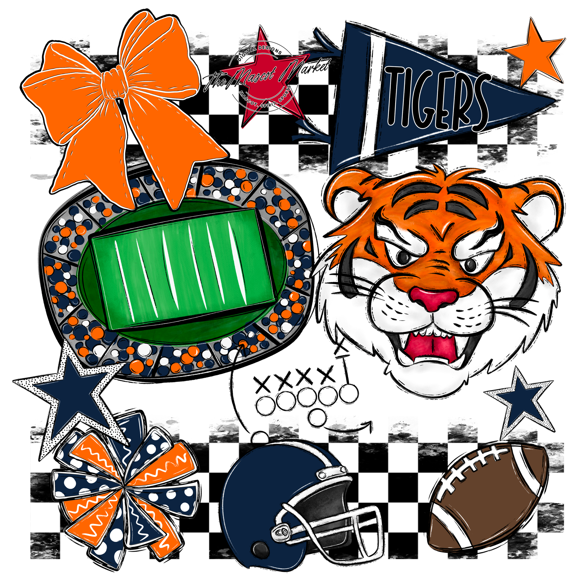 Tigers Checkers Mascot Spirit Design-Navy-Orange