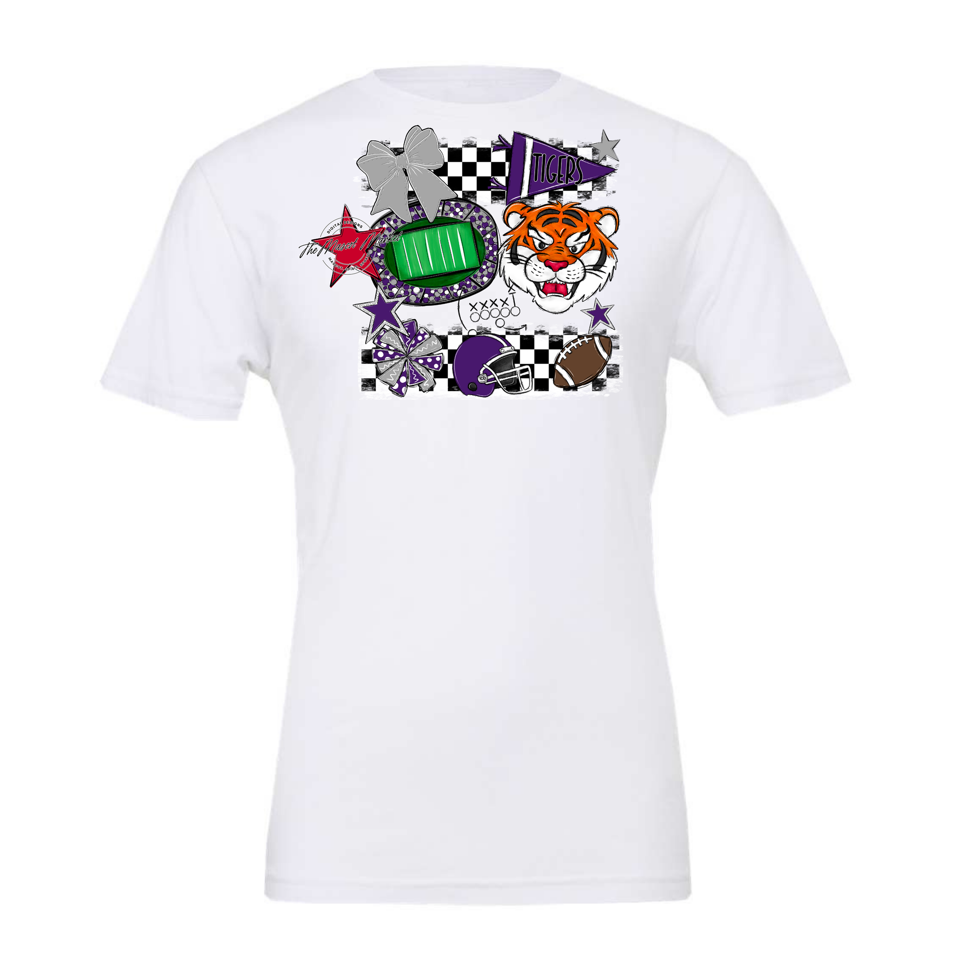 Tigers Checkers Mascot Spirit Design-Purple-Grey