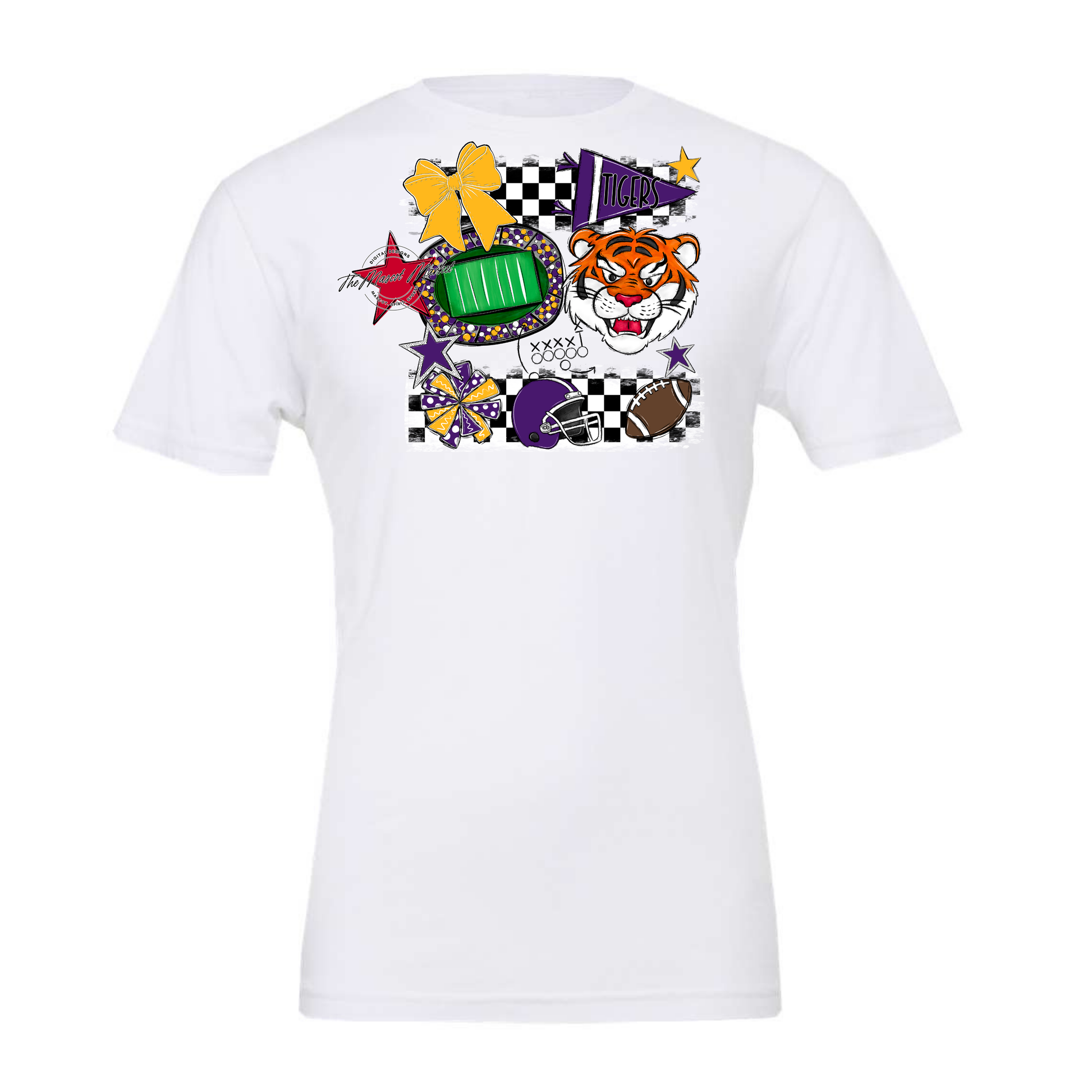 Tigers Checkers Mascot Spirit Design-Purple-Yellow