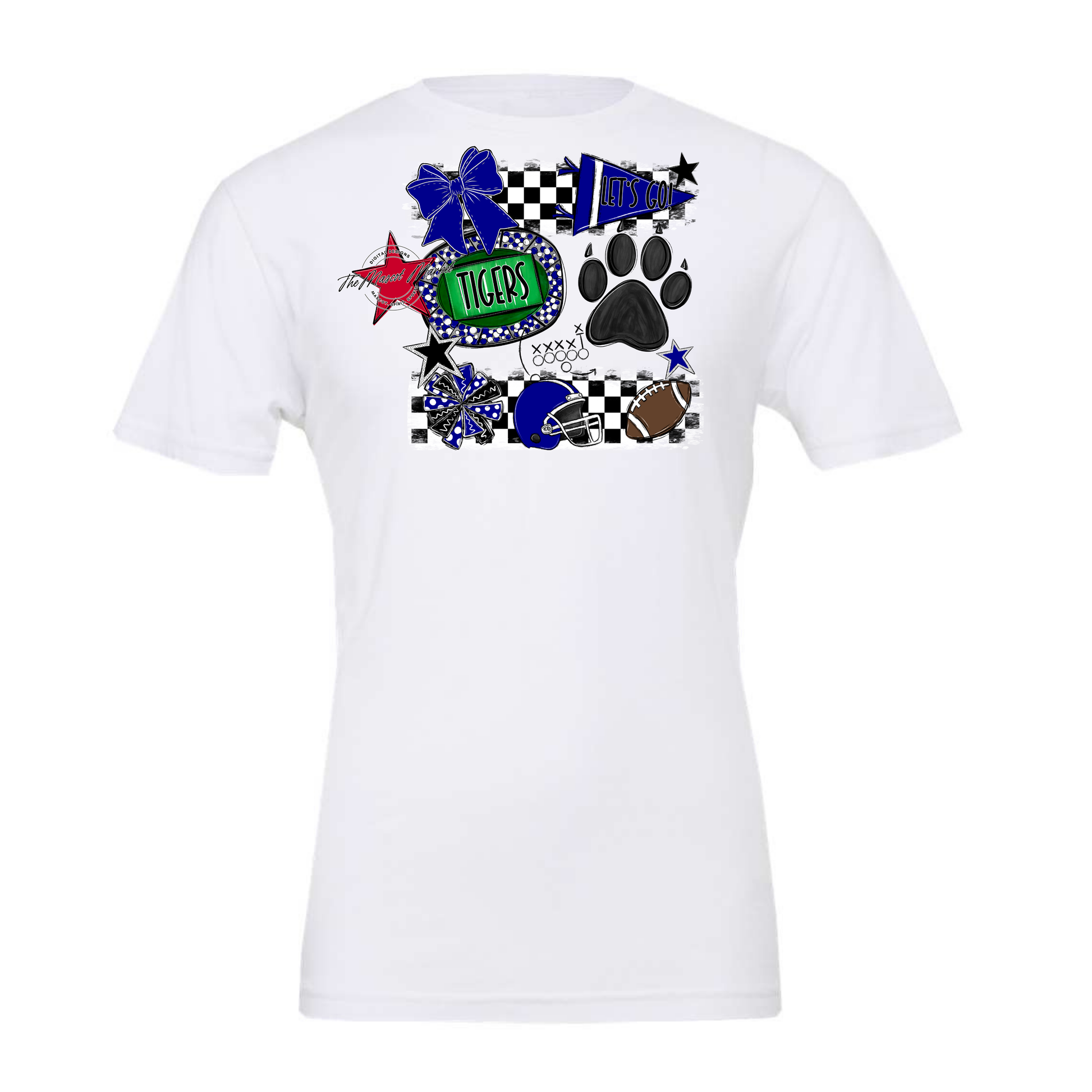 Tigers Checkers Mascot Spirit Design w Paw-Blue