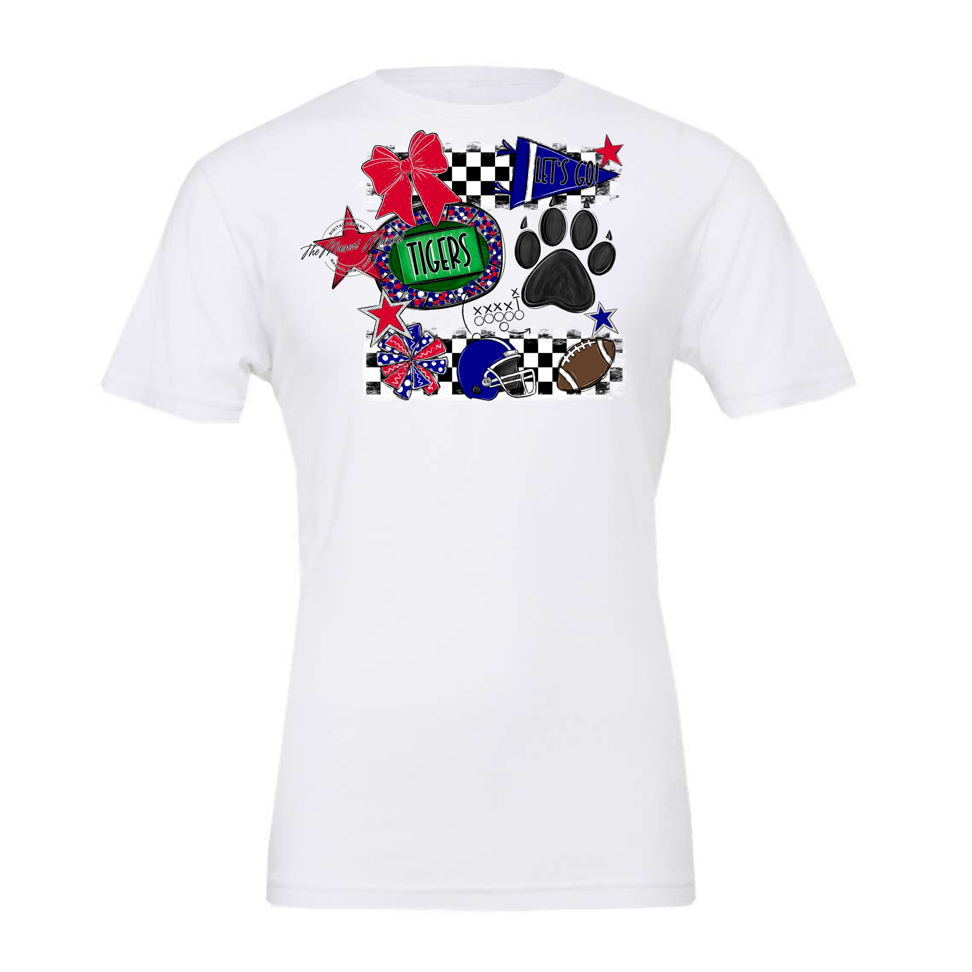 Tigers Checkers Mascot Spirit Design w Paw-Blue-Red