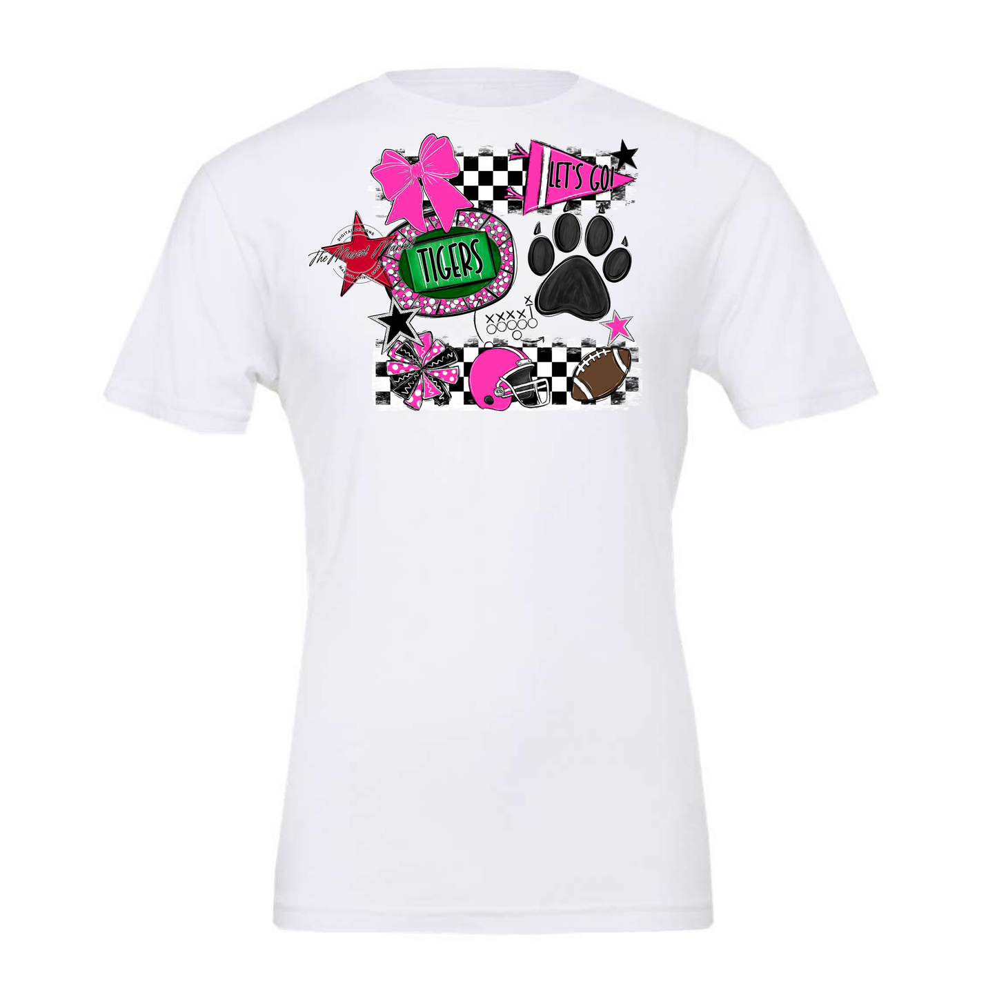 Tigers Checkers Mascot Spirit Design w Paw-Pink