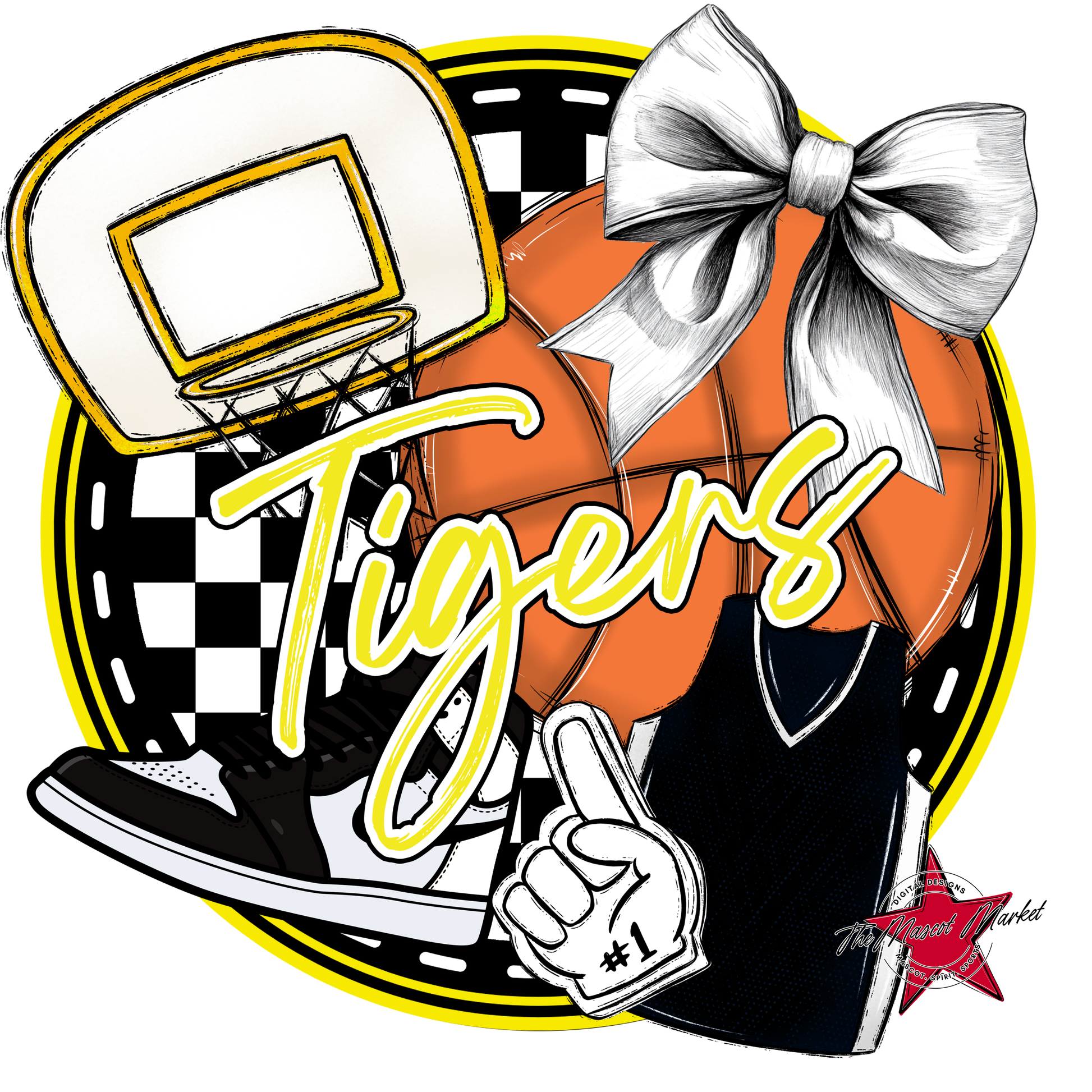 Tigers Circle Basketball Design-Bright Yellow