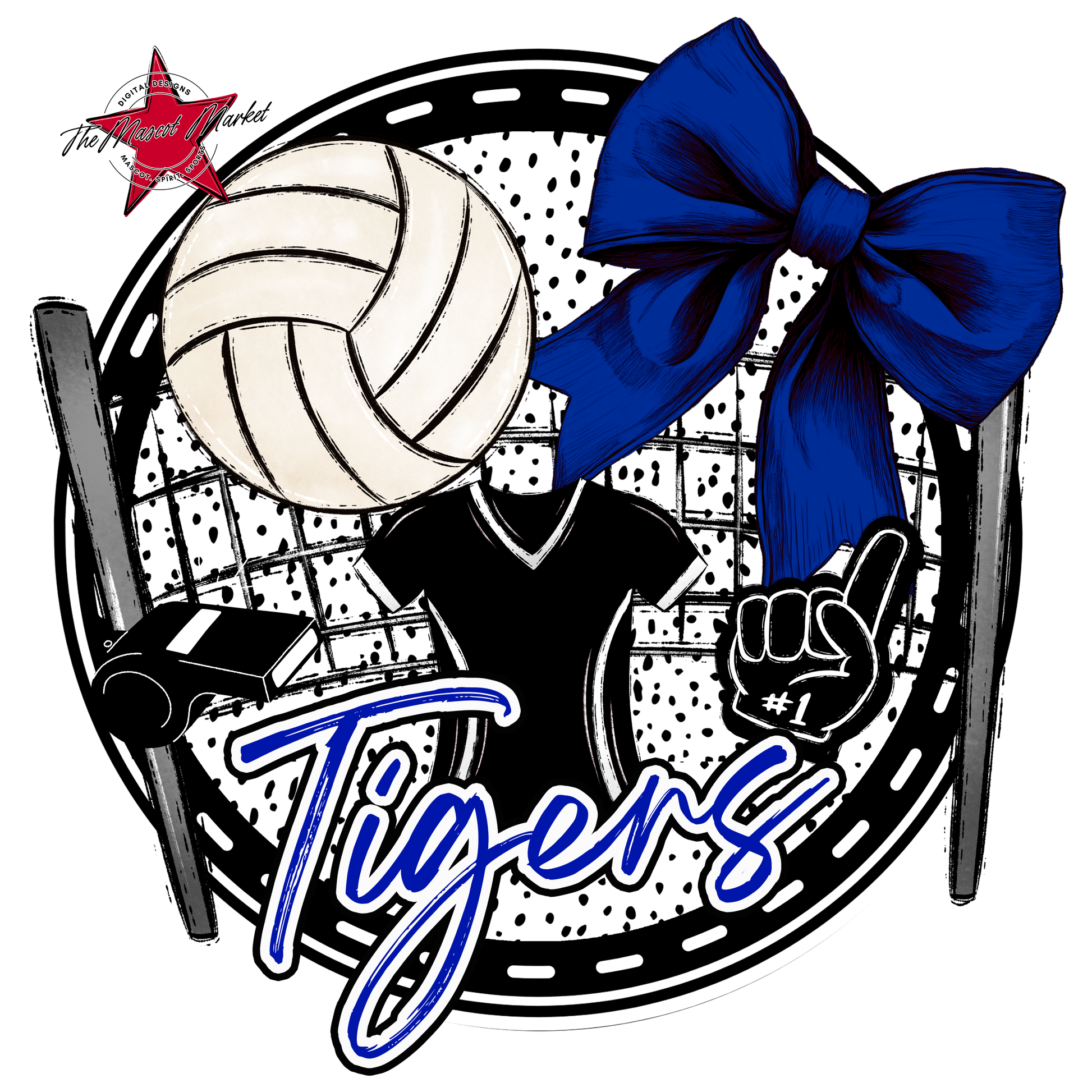 Tigers Circle Volleyball Design-Blue