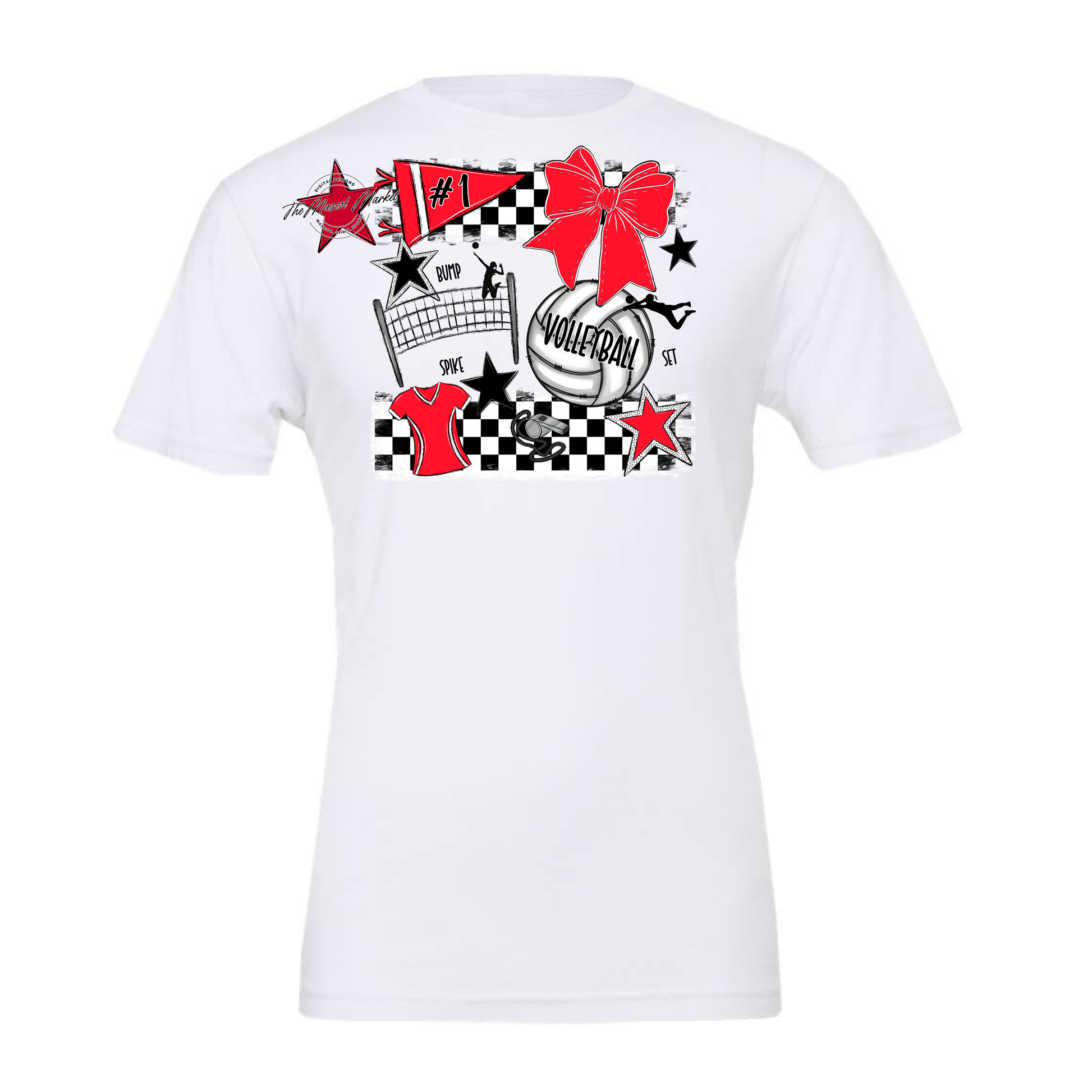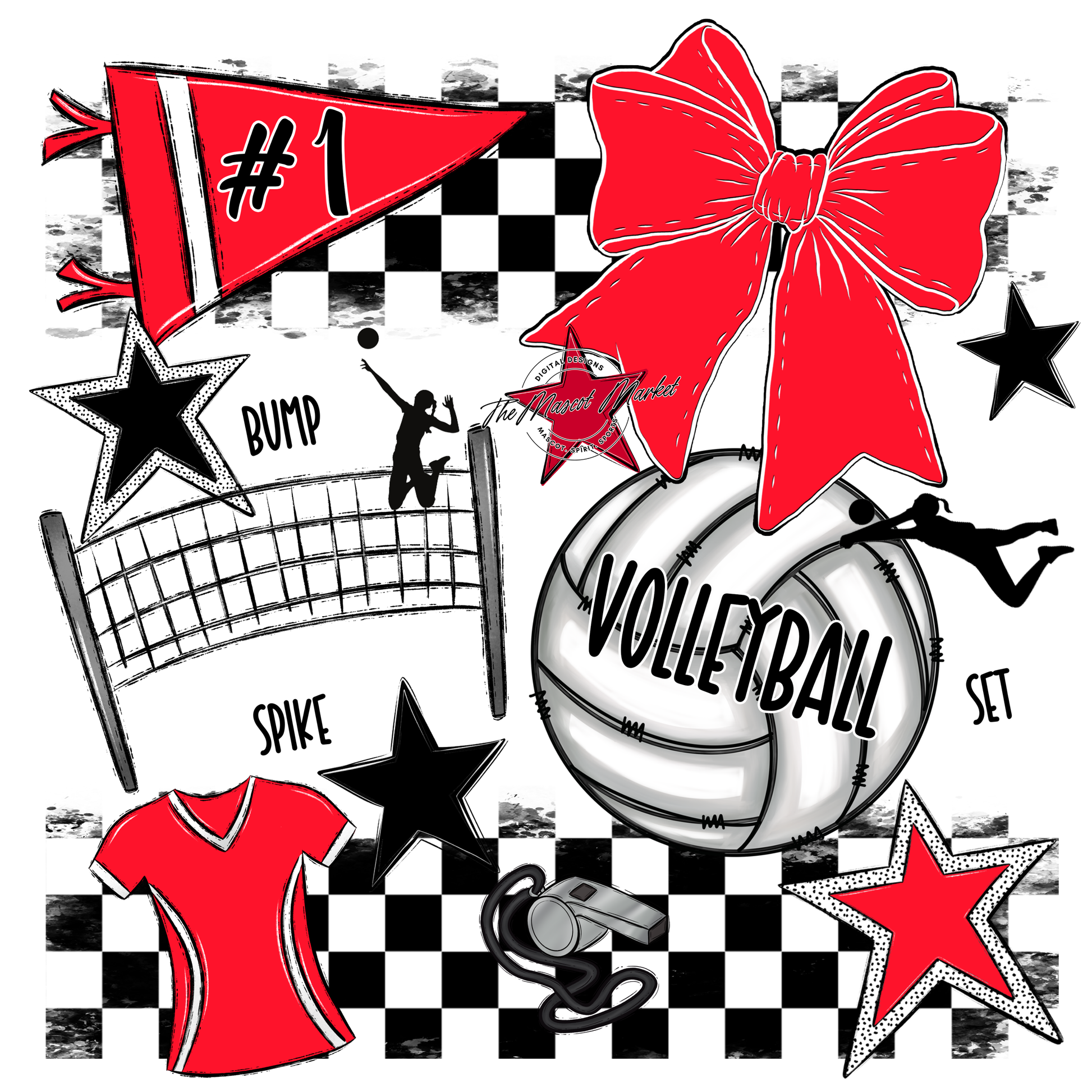 Volleyball Checkers Spirit Design-Bright Red