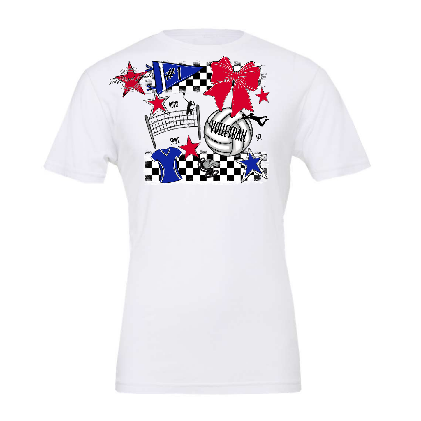 Volleyball Checkers Spirit Design-Royal Blue-Red