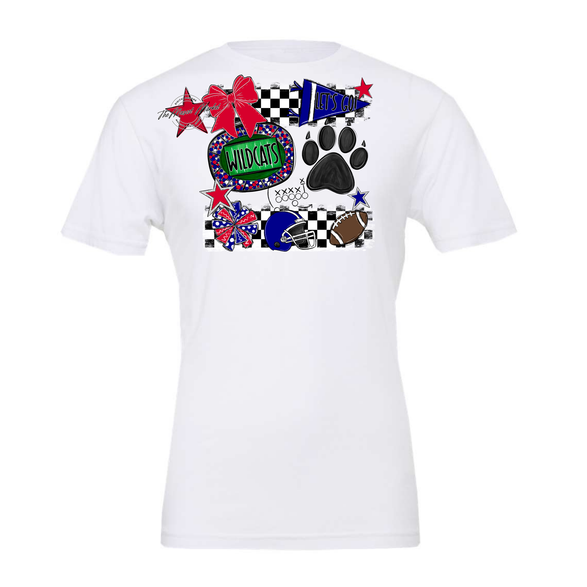 Wildcats Checkers Mascot Spirit Design w Paw-Blue-Red