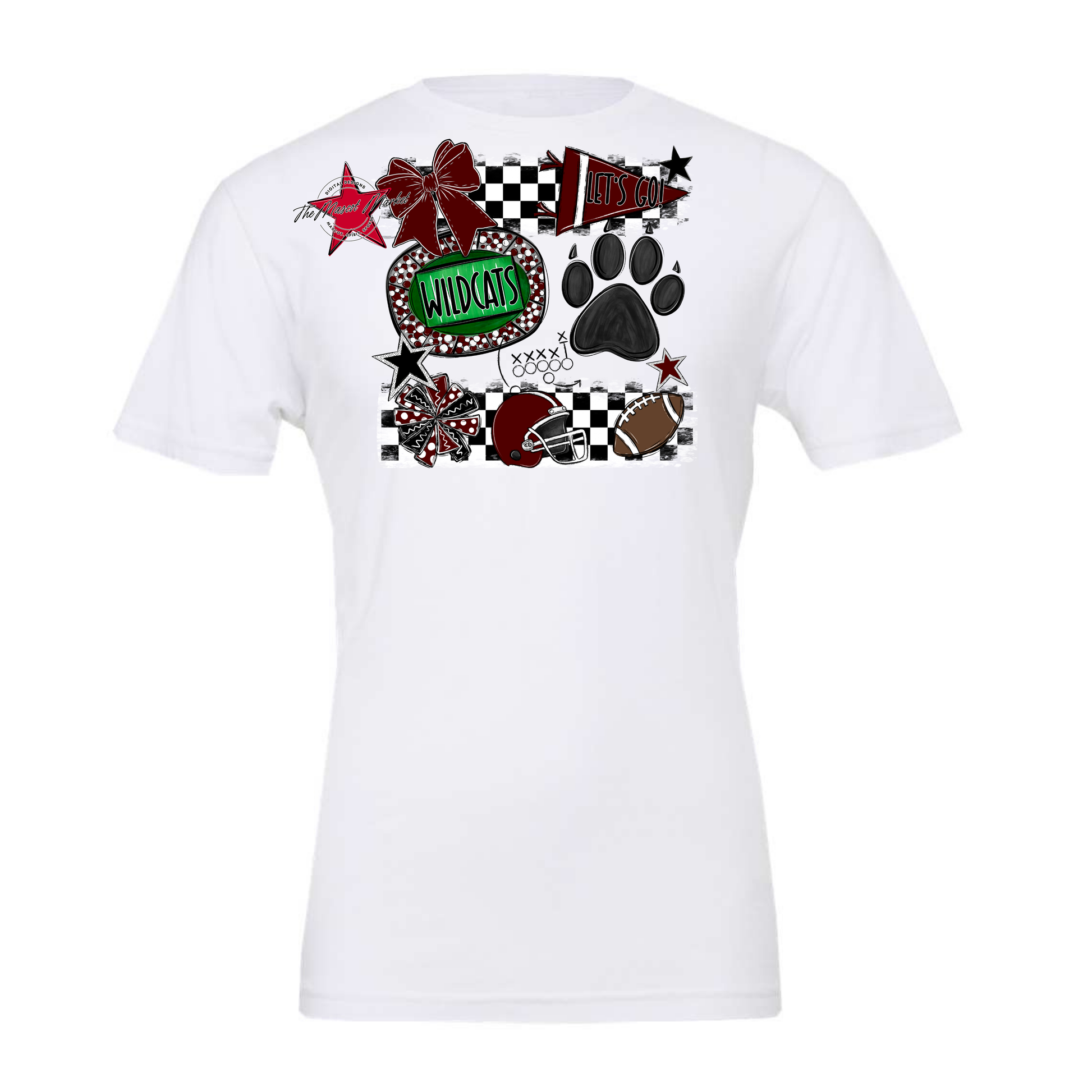 Wildcats Checkers Mascot Spirit Design w Paw-Maroon