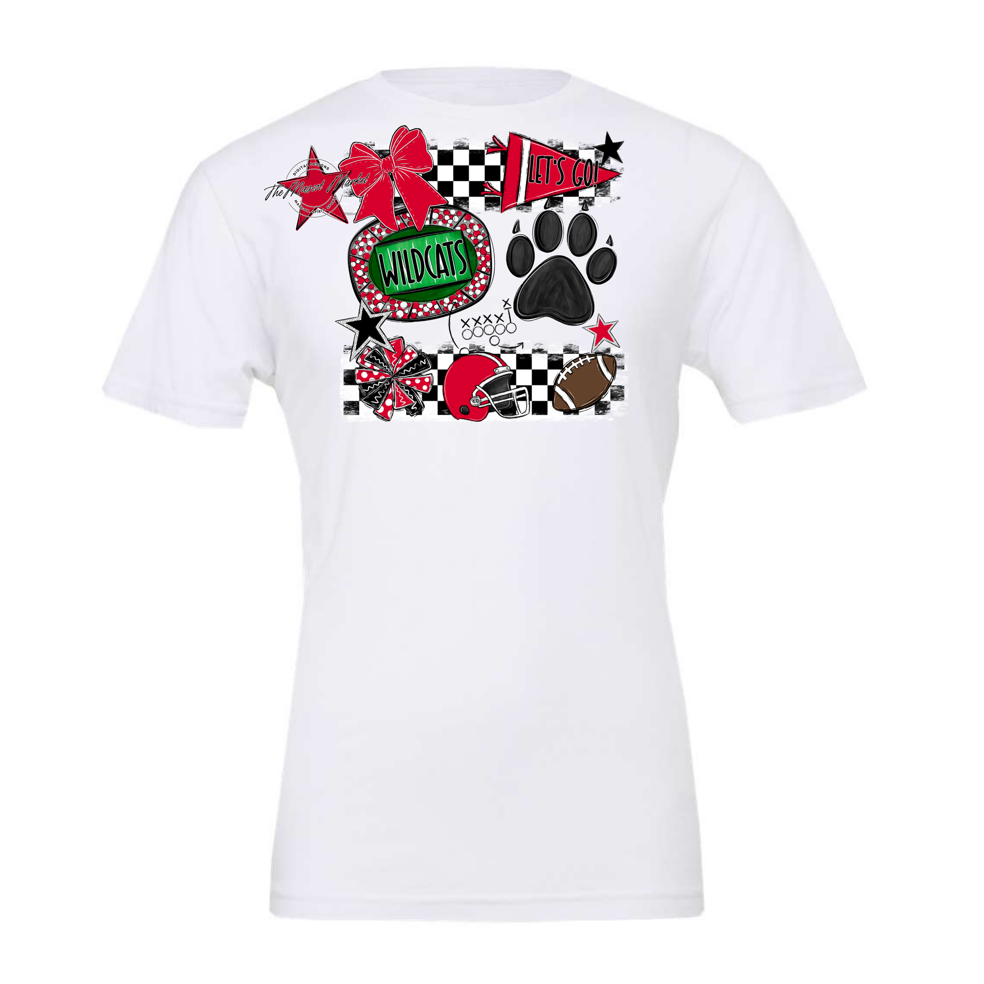 Wildcats Checkers Mascot Spirit Design w Paw-Red