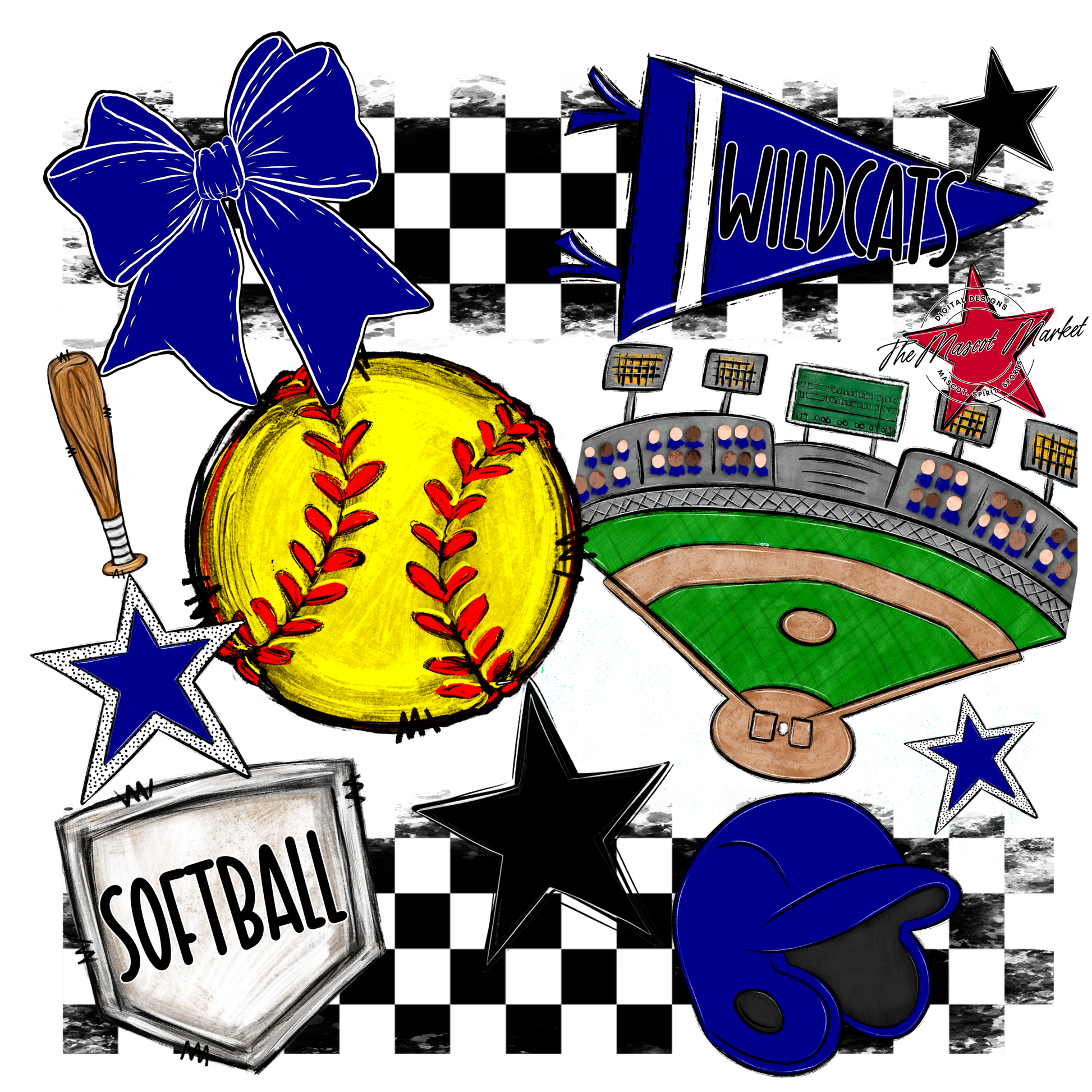 Wildcats Checkers Softball Spirit Design-Blue