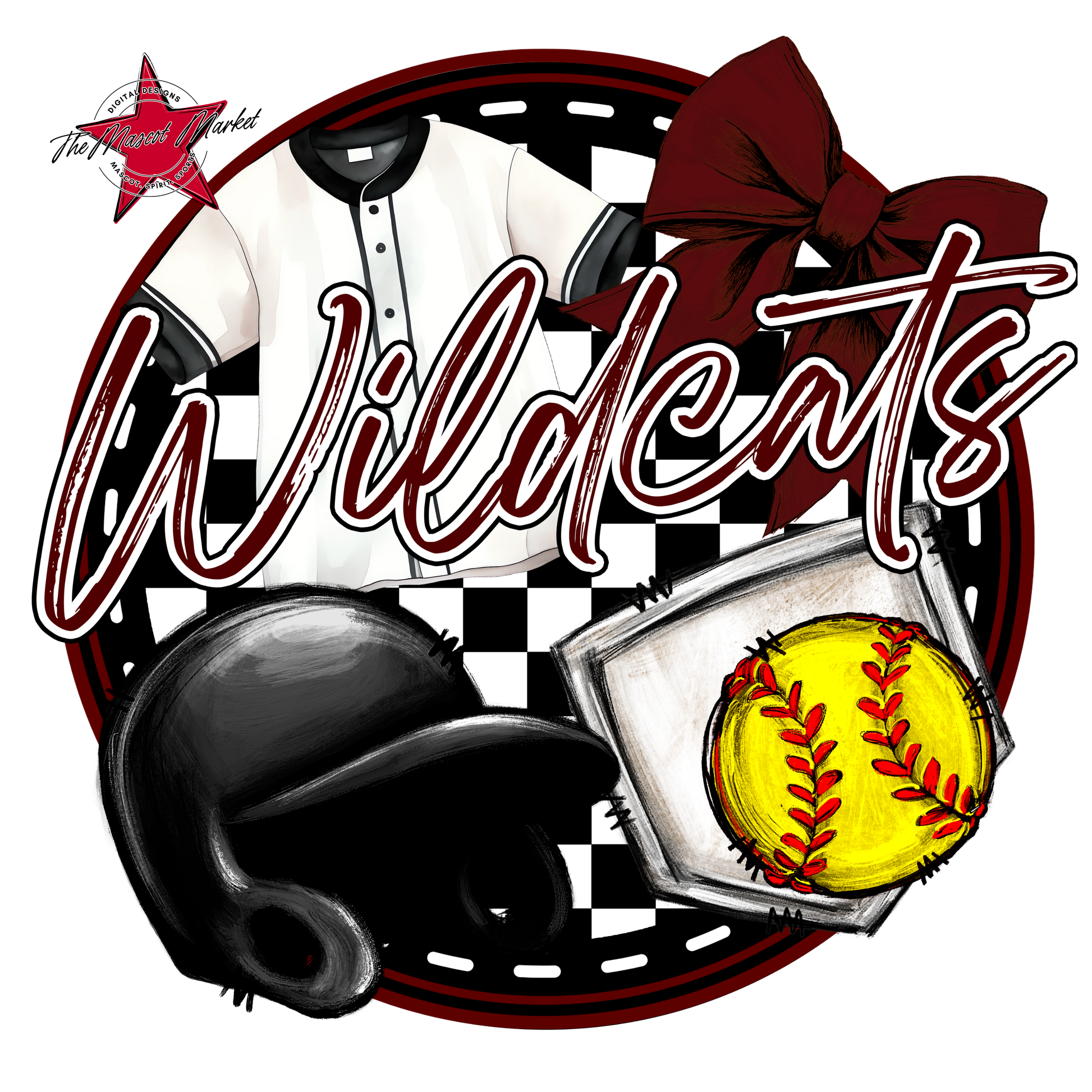 Wildcats Circle Softball Design-Maroon