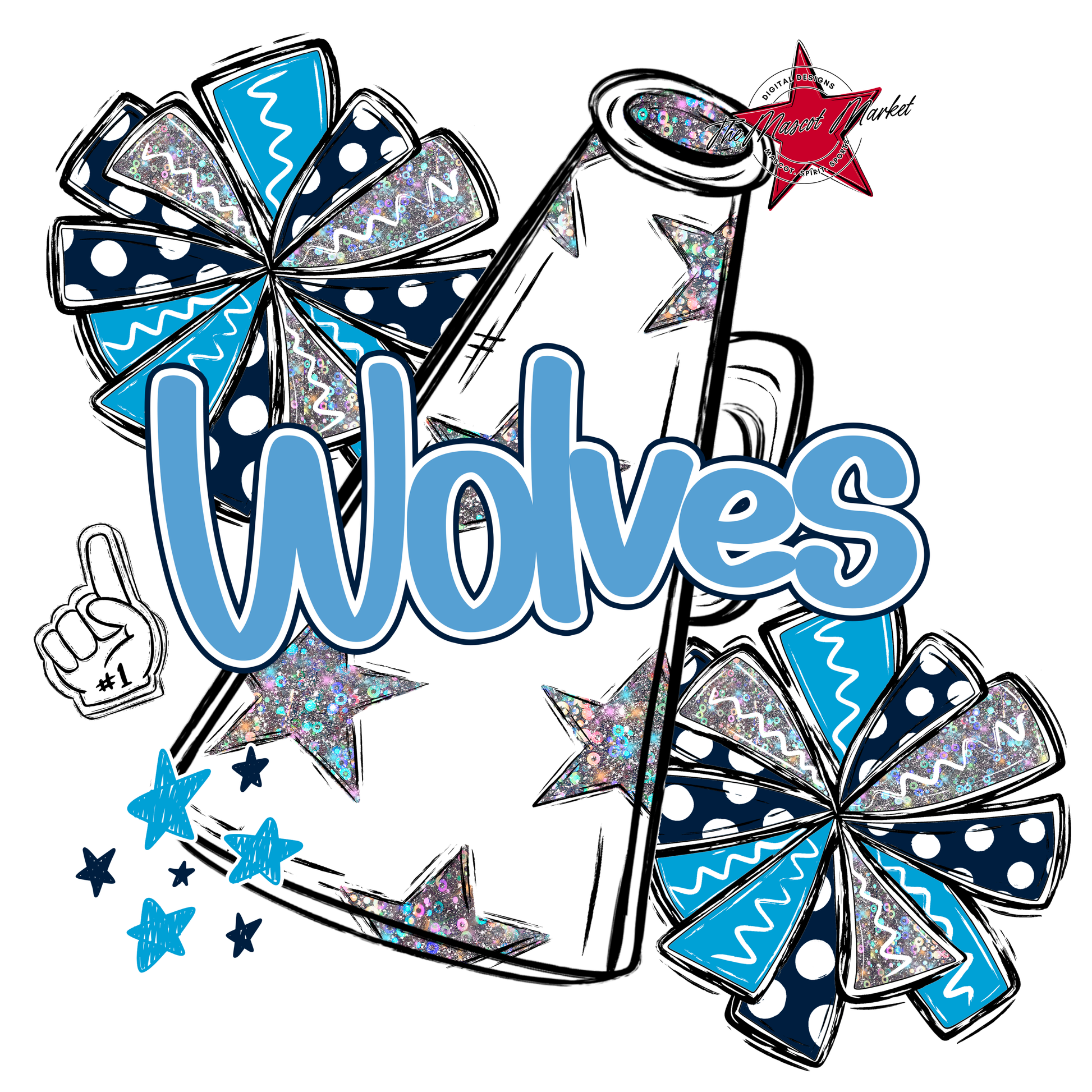 Wolves Alpha Megaphone Design-Navy-Carolina Blue