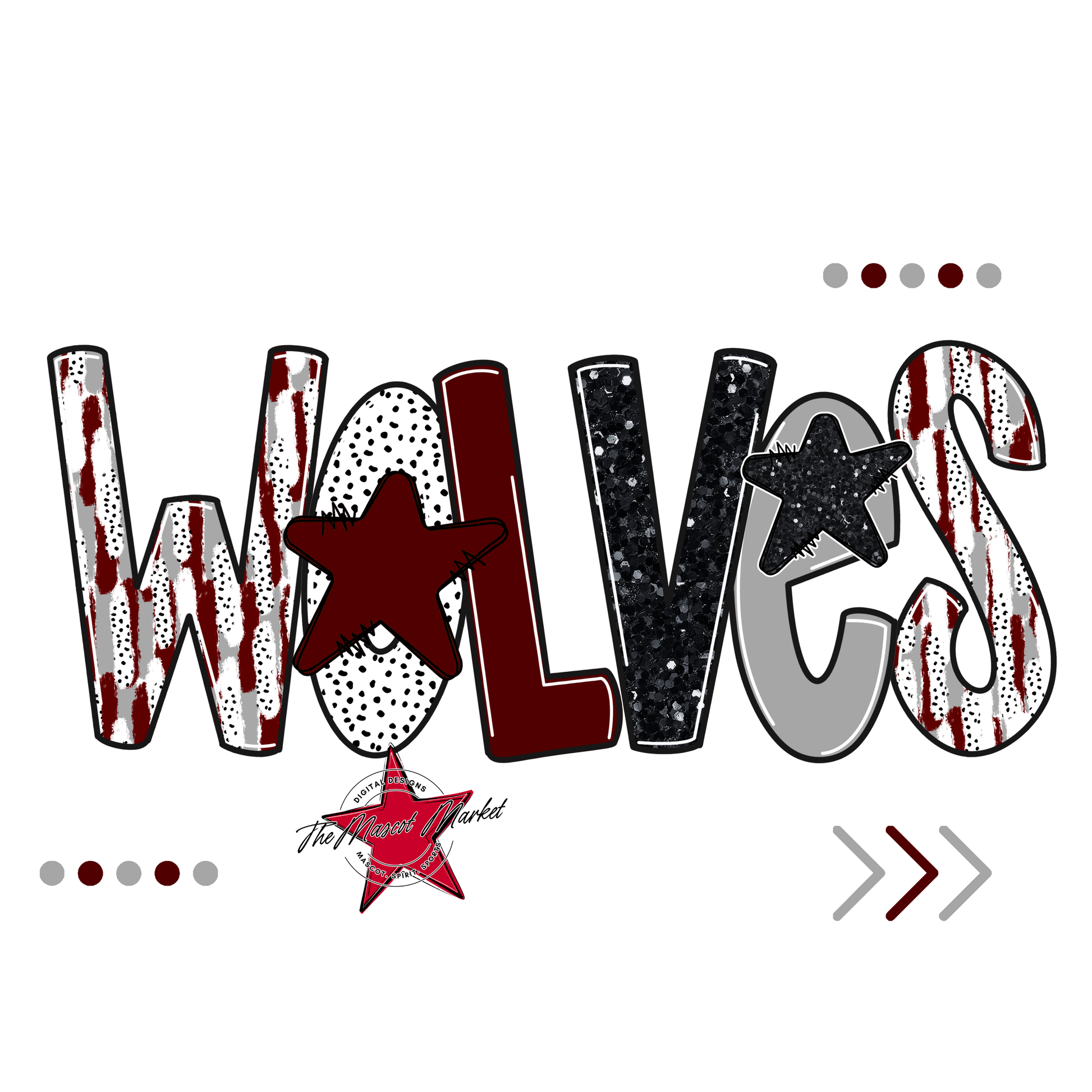 Wolves Brushstroke Alpha w Arrows-Maroon-Grey