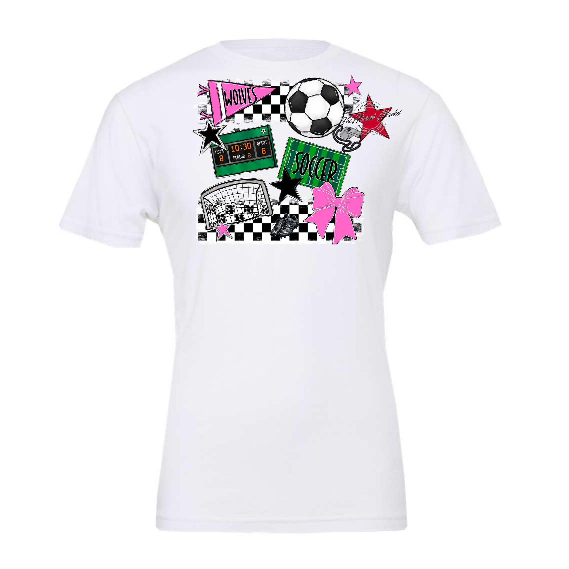 Wolves Checkers Soccer Spirit Design-Baby Pink