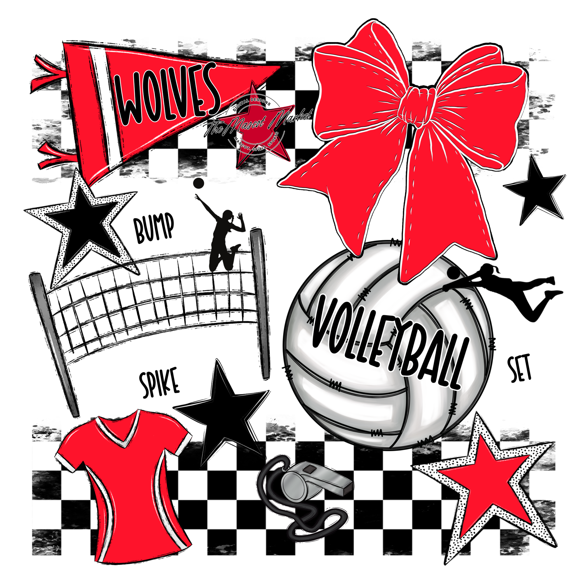 Wolves Checkers Volleyball Spirit Design-Bright Red