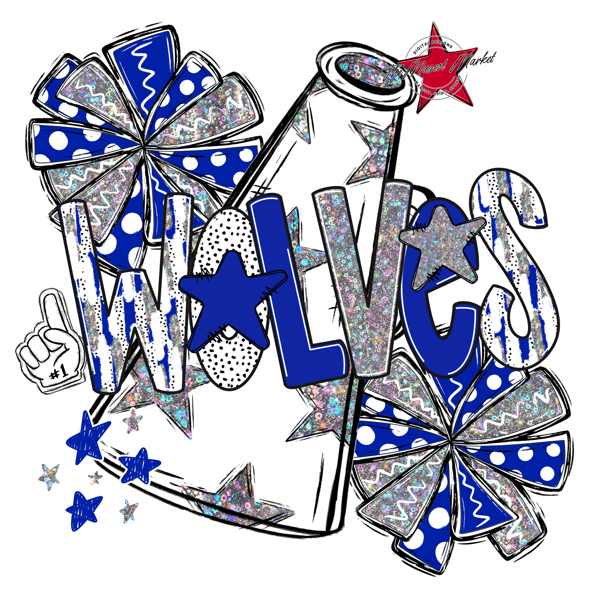 Wolves Cheer Megaphone Scrape-Royal Blue