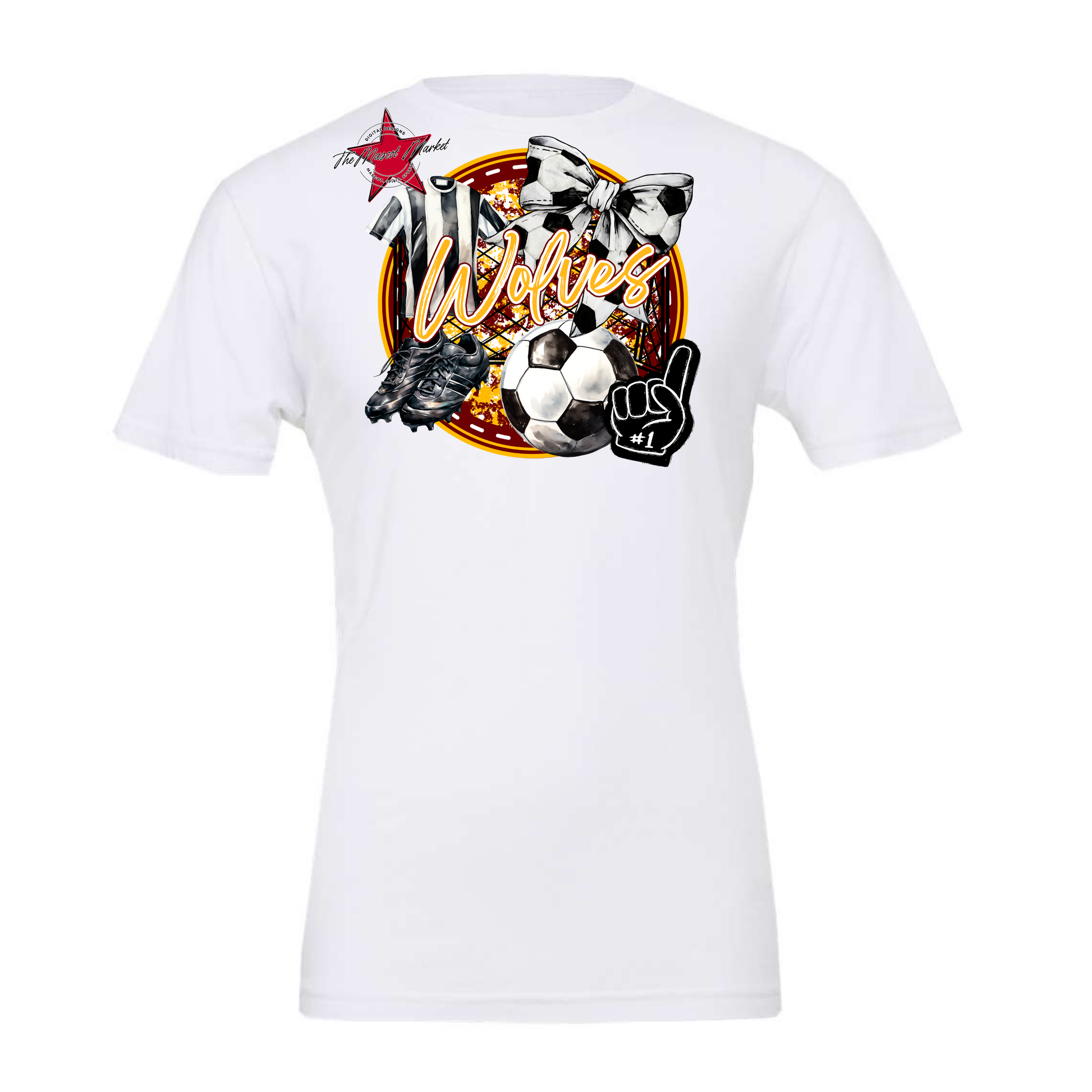 Wolves Circle Soccer Design-Maroon-Yellow